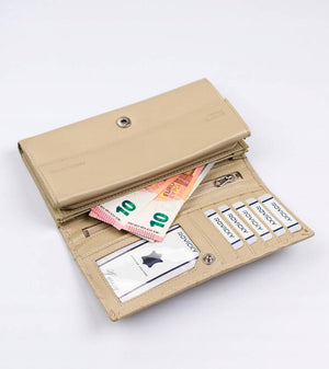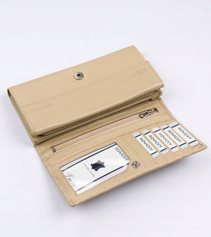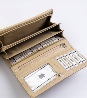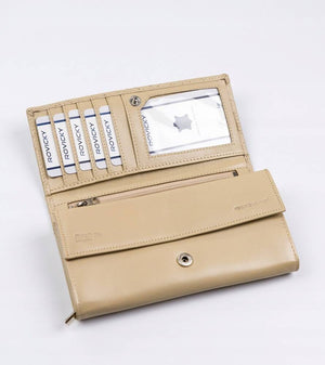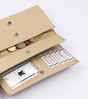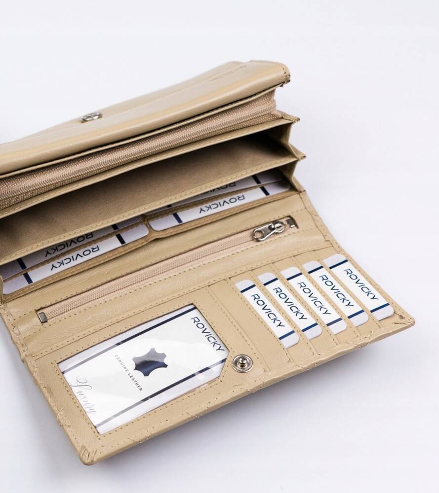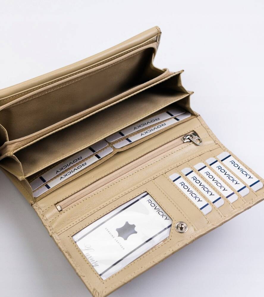Ši elegantiška moteriška piniginė iš Rovicky yra pagaminta iš aukštos kokybės natūralios odos, užtikrinančios ilgaamžiškumą ir stilių. Beždžioji spalva suteikia subtilumo ir universalumo, puikiai derančio prie įvairių aprangos derinių. Didelis dydis leidžia patogiai laikyti visus būtiniausius daiktus, o RFID apsauga užtikrina jūsų kortelių saugumą. Su 6-10 kortelių skyrių, ši piniginė yra praktiškas ir stilingas pasirinkimas kiekvienai moteriai.