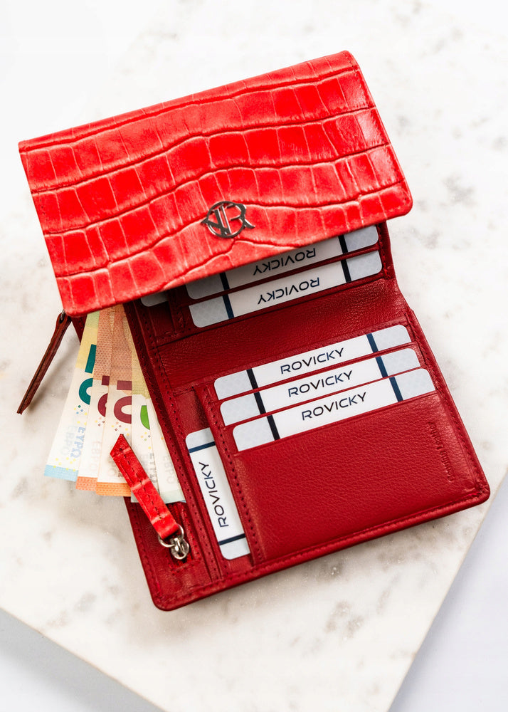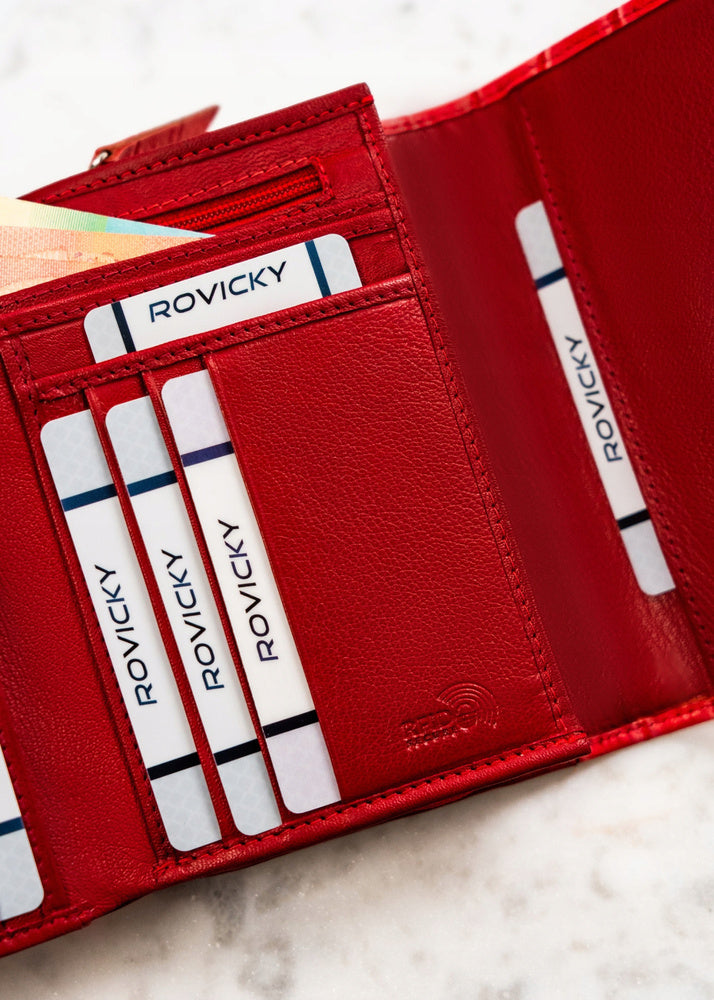 Ši elegantiška moteriška piniginė iš Rovicky yra puikus pasirinkimas ieškantiems kokybės ir stiliaus derinio. Pagaminta iš natūralios odos, ši piniginė ne tik atrodo prabangiai, bet ir yra ilgaamžė.