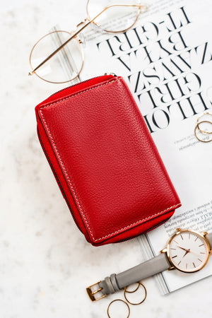 Ši elegantiška moteriška piniginė iš Rovicky yra pagaminta iš aukštos kokybės natūralios odos, kuri užtikrina ilgaamžiškumą ir stilingą išvaizdą. Raudona spalva suteikia išskirtinumo, o vidutinis dydis leidžia patogiai laikyti piniginę rankinėje. Su integruota RFID apsauga jūsų kortelės bus saugios nuo nepageidaujamo nuskaitymo. Piniginėje yra 6-10 kortelių skyrių, todėl ji puikiai tiks tiek kasdieniam naudojimui, tiek ypatingoms progoms.
