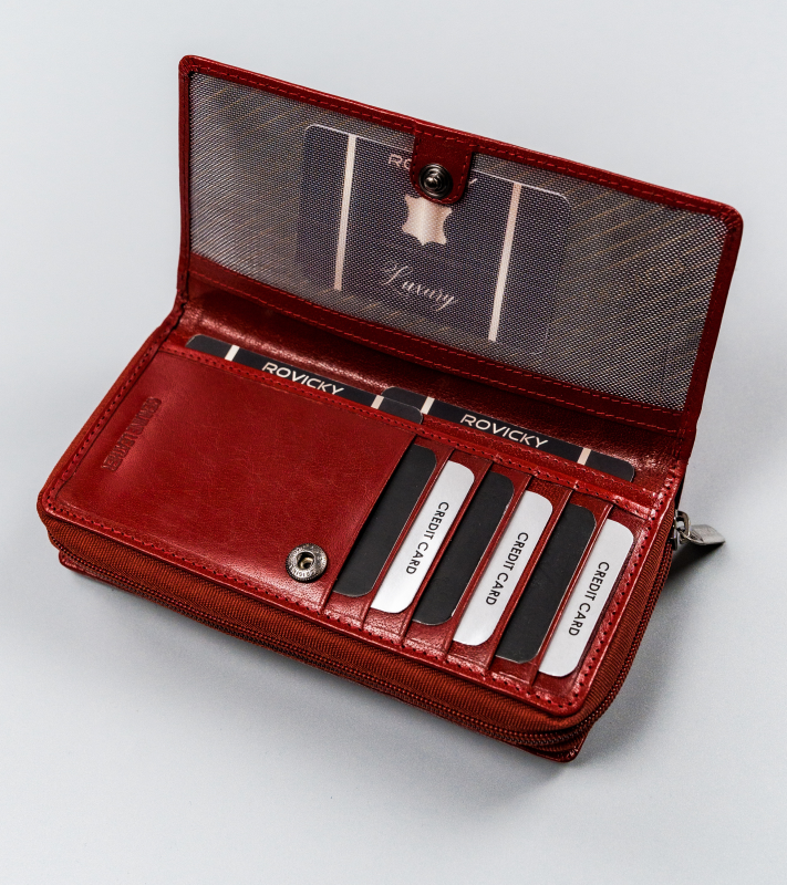 Ši elegantiška ir funkcionali piniginė moterims Rovicky L41 yra puikus pasirinkimas tiems, kurie vertina kokybę ir stilių. Pagaminta iš natūralios odos, ji ne tik atrodo prabangiai, bet ir yra ilgaamžė. Raudona spalva suteikia išskirtinumo, o didelis dydis užtikrina, kad viskas, ko reikia, tilps vienoje vietoje. Su daugiau nei 10 kortelių skyrių ir RFID apsauga, jūsų asmeniniai duomenys bus saugūs. Išmatavimai 10 cm x 19 cm x 3,5 cm leidžia patogiai laikyti piniginę rankinėje ar kišenėje.