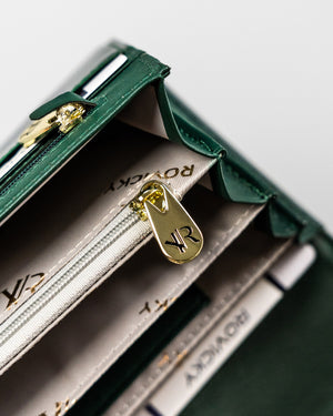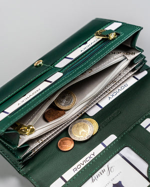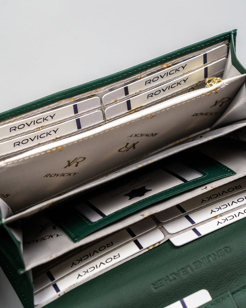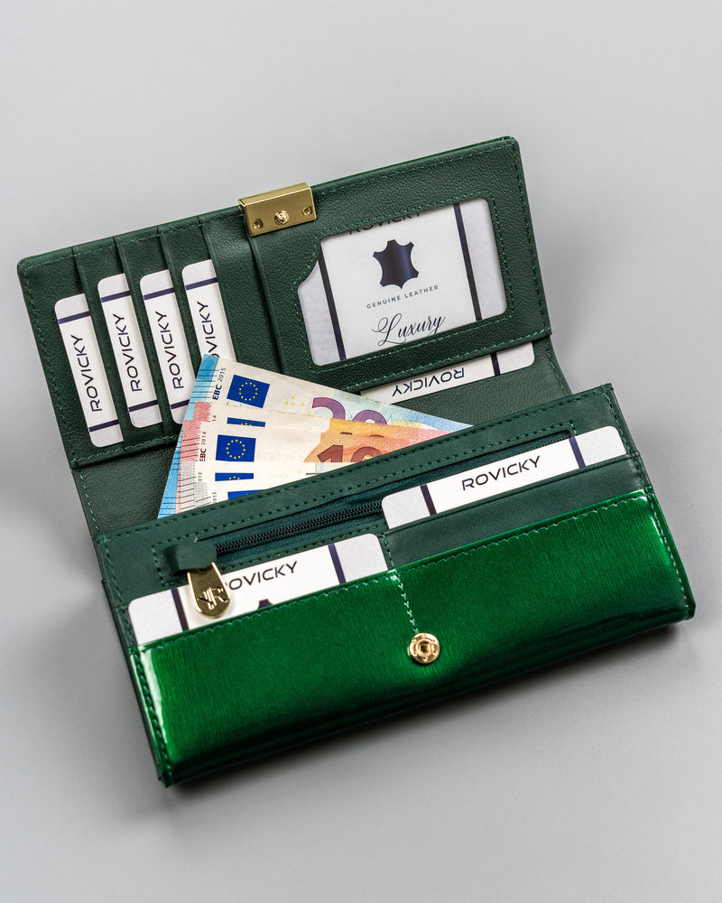 Ši elegantiška ir talpi piniginė puikiai tiks moterims, vertinančioms kokybę ir funkcionalumą. Pagaminta iš natūralios odos, ji ne tik atrodo prabangiai, bet ir yra ilgaamžė. Daugiau nei 15 kortelių skyrių užtikrina, kad visos jūsų kortelės bus tvarkingai sudėtos. Nors piniginė neturi RFID apsaugos, jos didelis dydis ir patogus dizainas kompensuoja šį trūkumą. Žalia spalva suteikia šviežumo ir išskirtinumo jūsų aksesuarų kolekcijai.