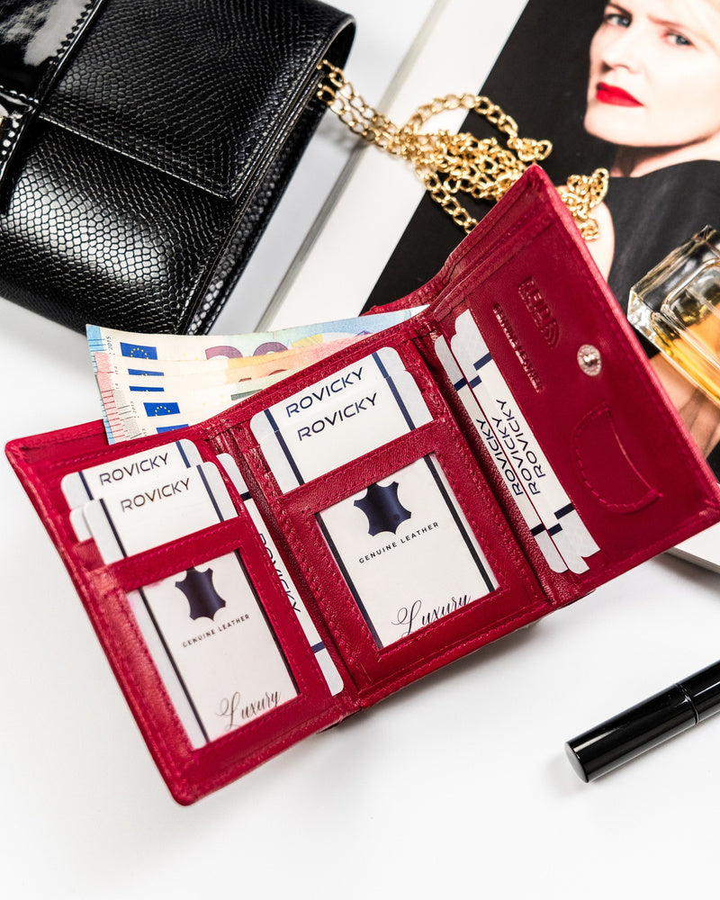 Ši elegantiška moteriška piniginė iš Rovicky yra puikus pasirinkimas ieškančioms kokybės ir stiliaus. Pagaminta iš aukštos kokybės natūralios odos, ji ne tik atrodo prabangiai, bet ir yra ilgaamžė.