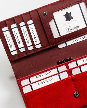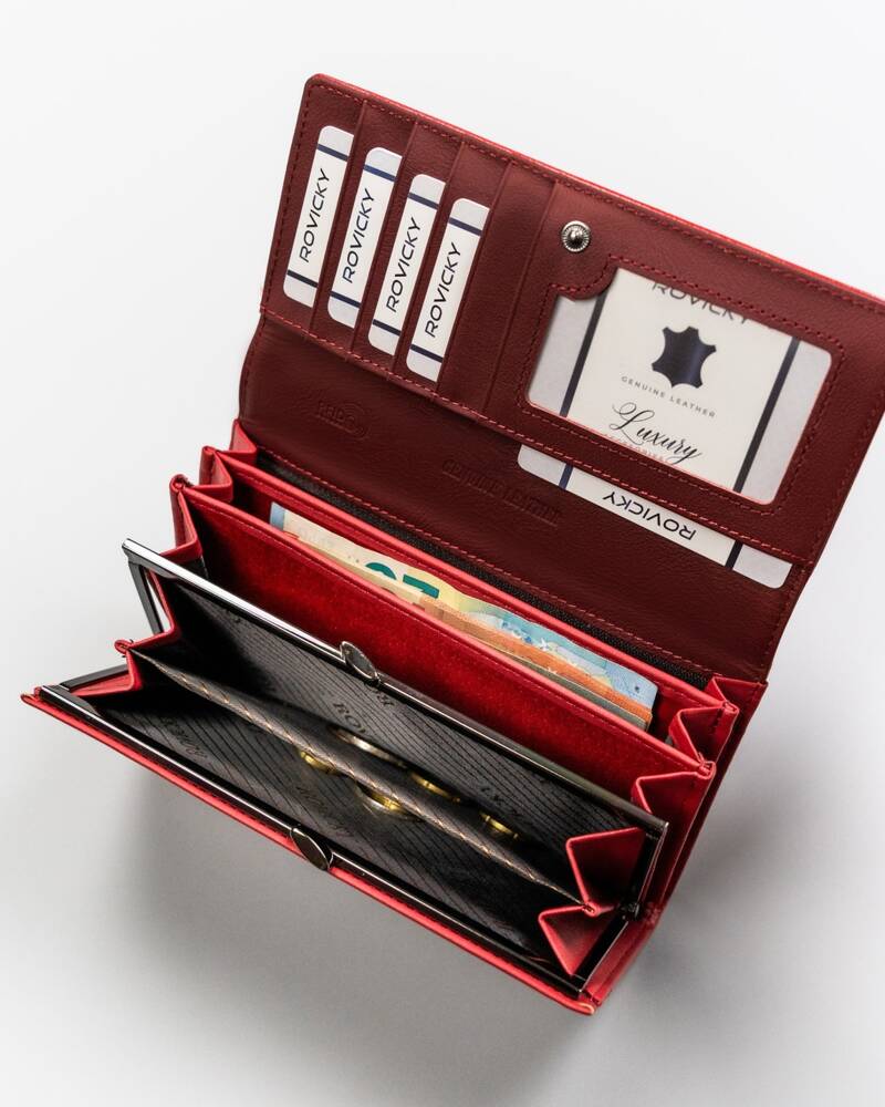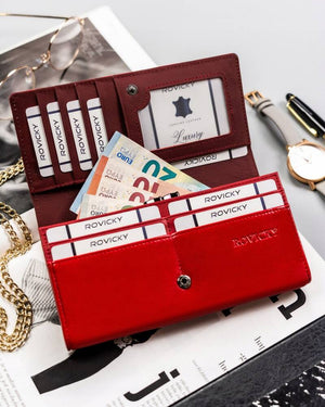 Ši elegantiška ir funkcionali piniginė moterims Rovicky L85 yra puikus pasirinkimas ieškantiems kokybės ir stiliaus. Pagaminta iš natūralios odos, ji ne tik atrodo prabangiai, bet ir yra ilgaamžė. Raudona spalva suteikia išskirtinumo, o didelis dydis užtikrina, kad turėsite pakankamai vietos visiems savo daiktams. Su 6-10 kortelių skyrių ir RFID apsauga, jūsų kortelės bus saugios ir tvarkingai laikomos. Išmatavimai 9,5 cm x 19 cm x 3 cm leidžia patogiai nešiotis piniginę tiek rankinėje, tiek rankoje.