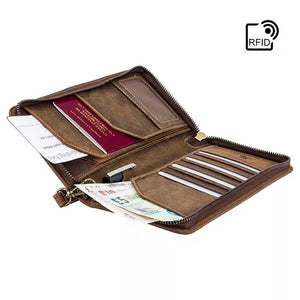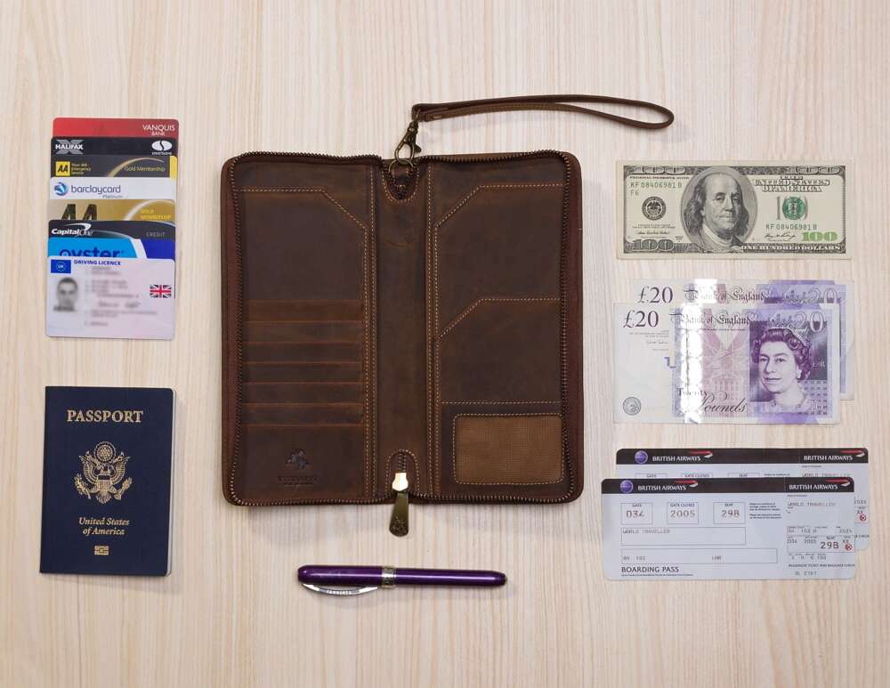 - Daug skyrių: Įrengta 8 skyriai kortelėms, 2 dideli skyriai banknotams ir 1 užtraukiama kišenė smulkiems daiktams.