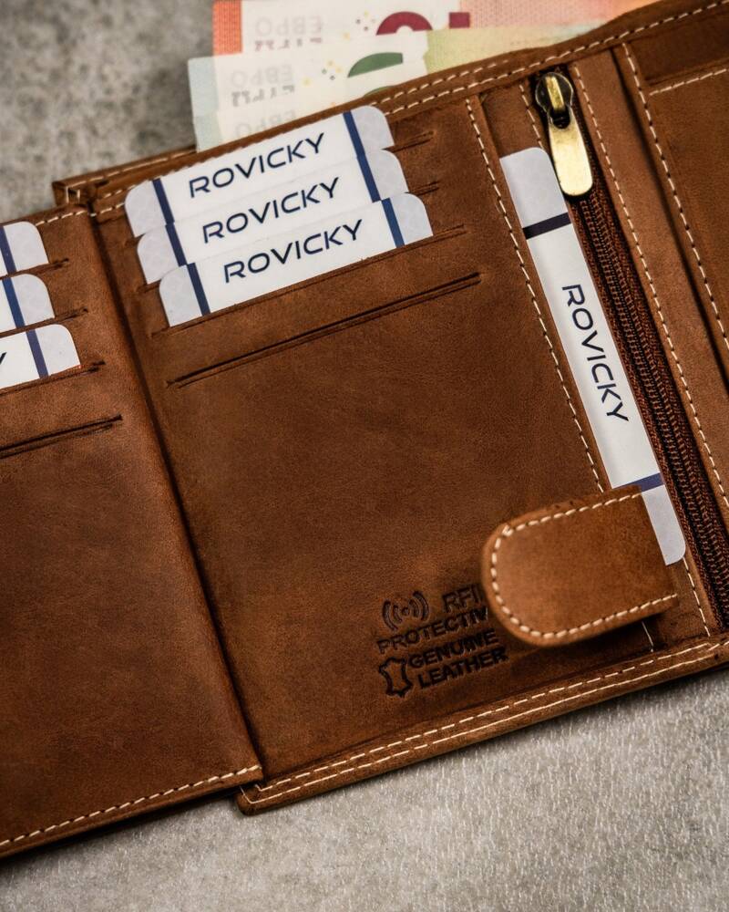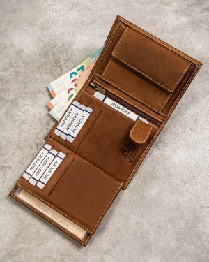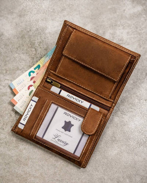 Ši elegantiška ir funkcionali piniginė yra puikus pasirinkimas vyrams, vertinantiems kokybę ir saugumą. Pagaminta iš natūralios zomšos ir nubuko odos, ji ne tik atrodo stilingai, bet ir užtikrina ilgaamžiškumą. Šviesiai ruda spalva suteikia klasikinį ir universalų įvaizdį, tinkantį įvairioms progoms. Didelis dydis leidžia patogiai laikyti visus būtinus daiktus, o RFID apsauga saugo jūsų korteles nuo nepageidaujamo nuskaitymo. Su 6-10 kortelių skyriais, ši piniginė yra praktiška ir patogi kasdieniam naudojimui.