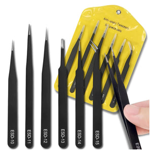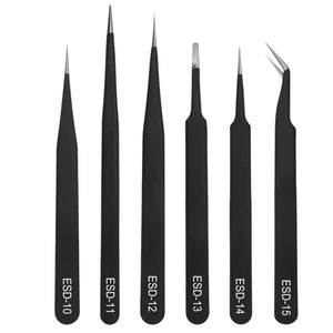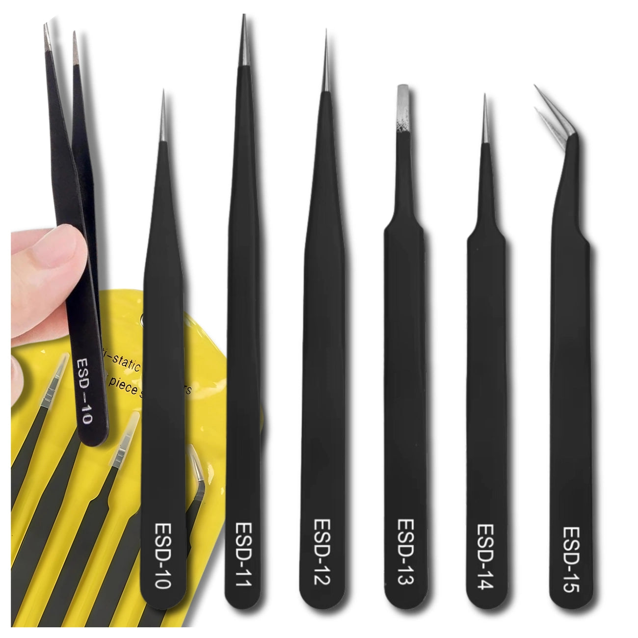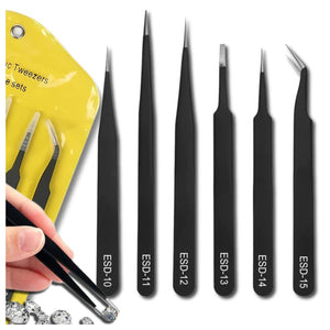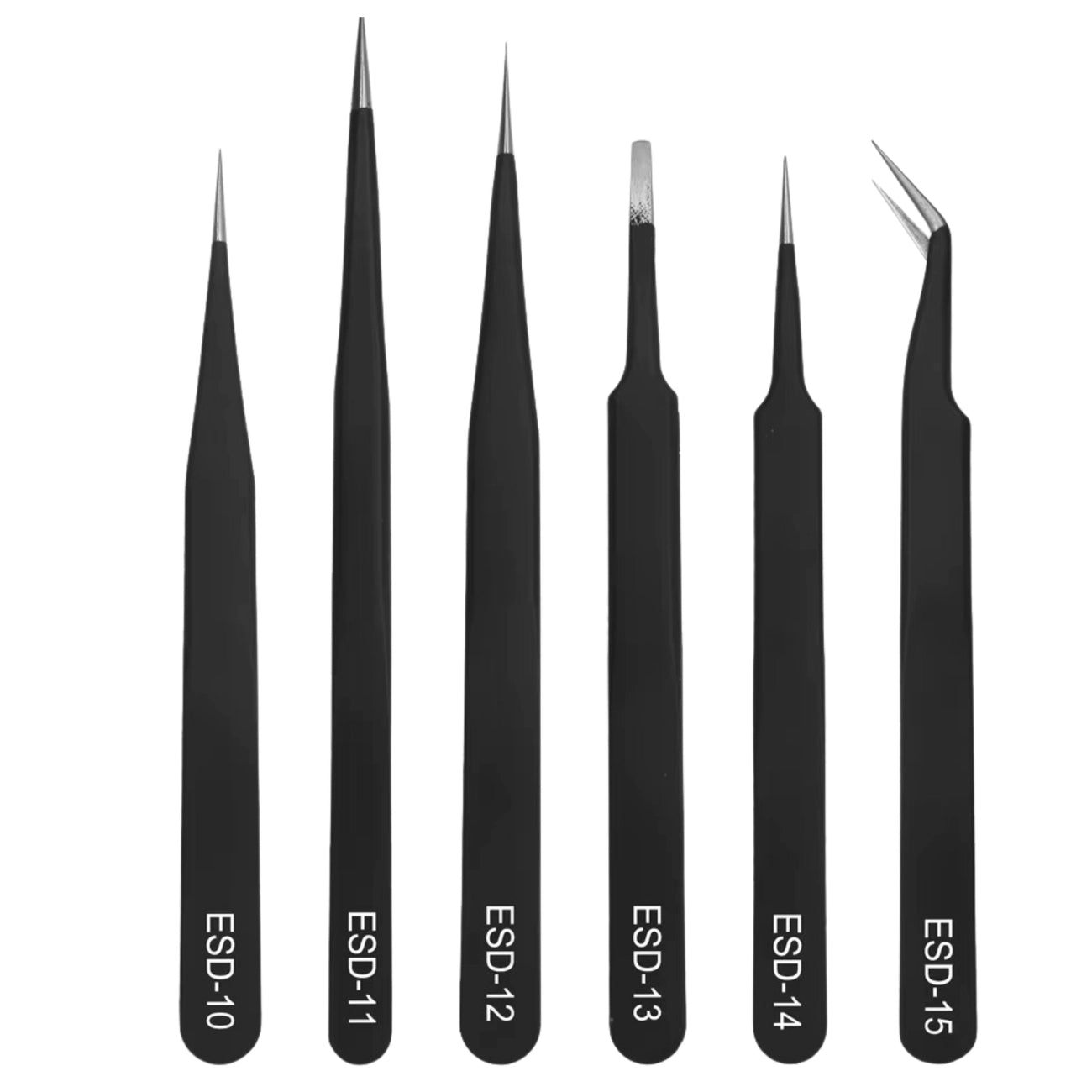 Preciziškų pincetų rinkinys, sudarytas iš 6 vienetų, idealiai tinka elektronikos remontui, modeliavimui, juvelyrikai, kosmetikai ir įvairiems namų darbams.