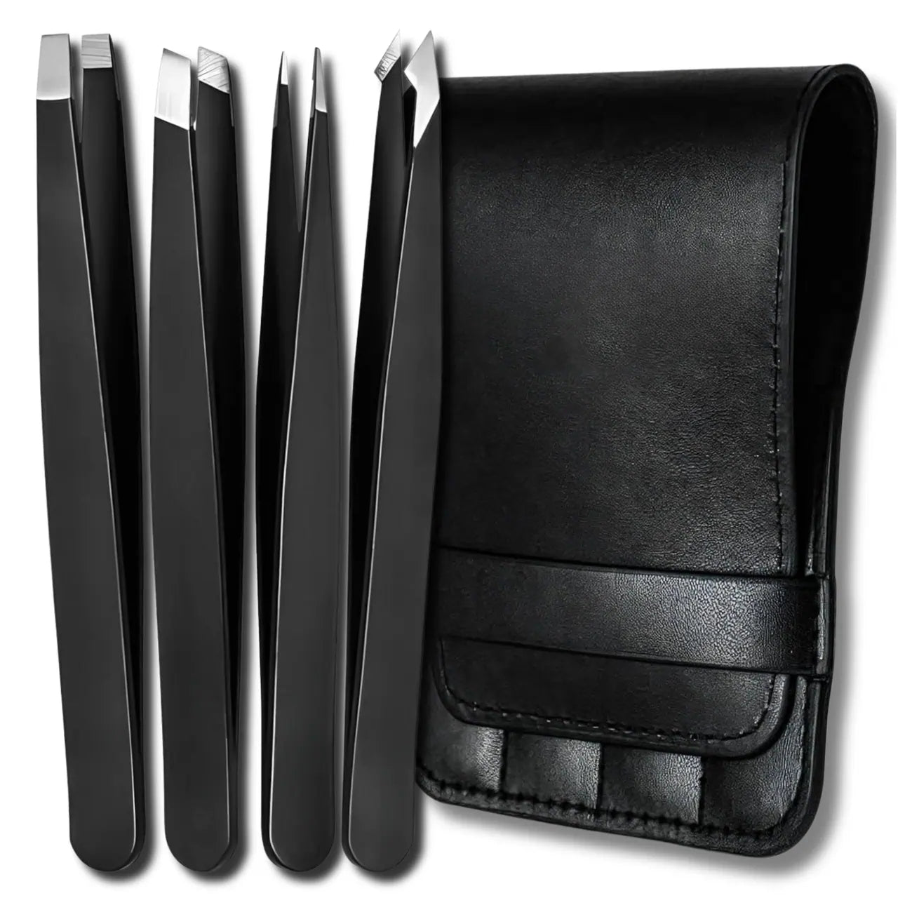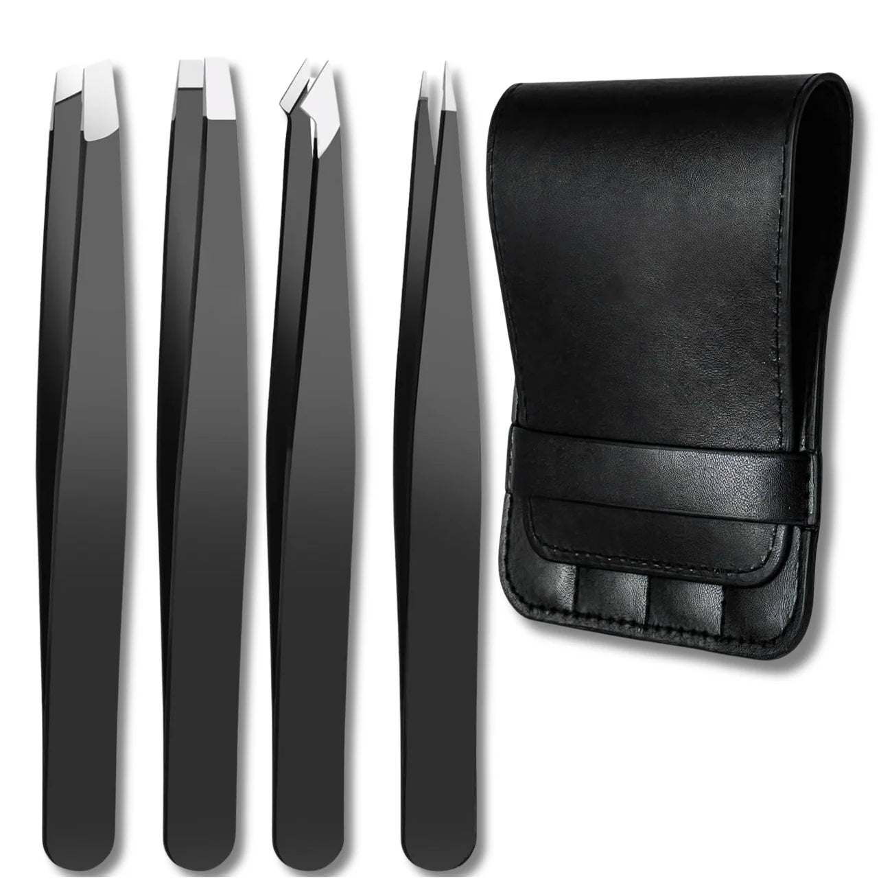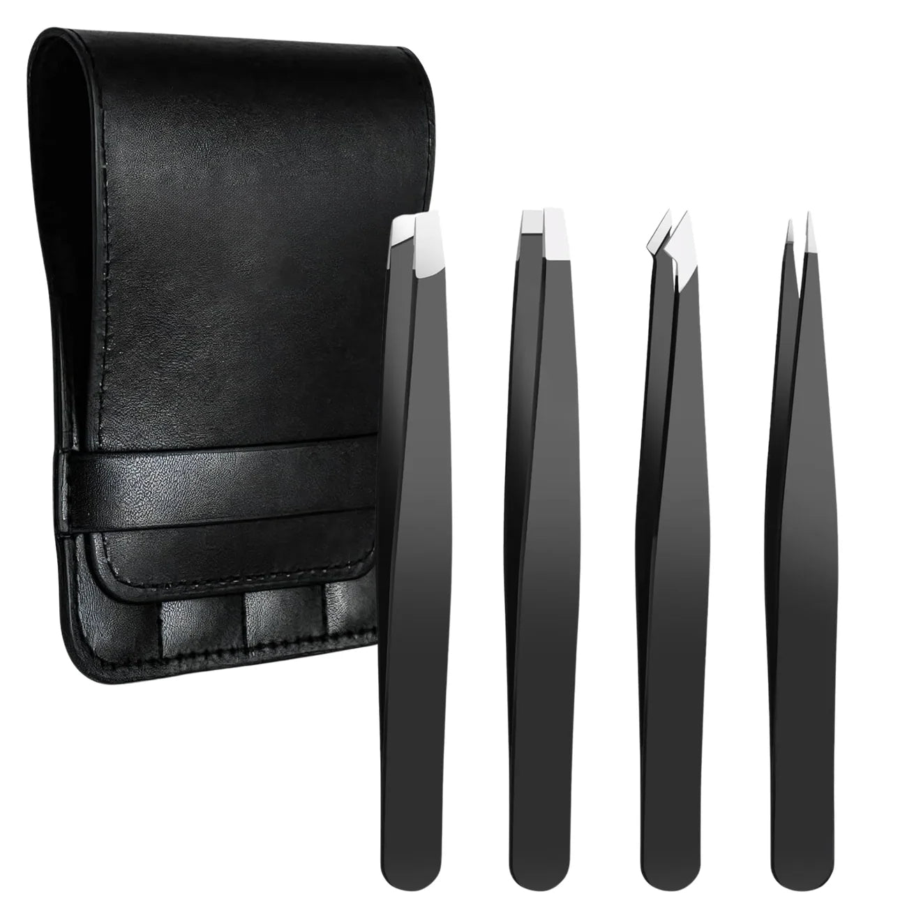 Profesionalių pincetų rinkinys, 4 vnt., nerūdijantis plienas, su dėklu