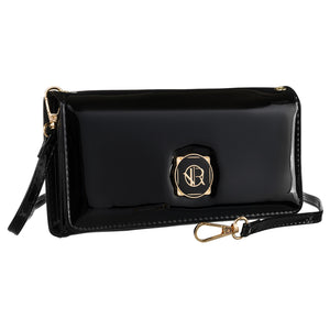 Rovicky 2in1 juoda lakinė rankinė – delninukė ir piniginė viename