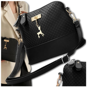 Ši elegantiška juoda rankinė su elnio formos pakabuku yra puikus pasirinkimas kasdieniam naudojimui. Jos dizainas yra ne tik stilingas, bet ir praktiškas.