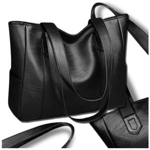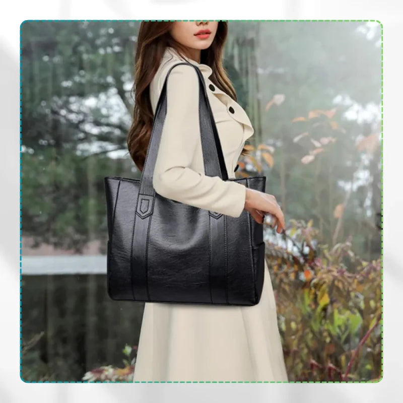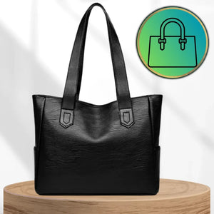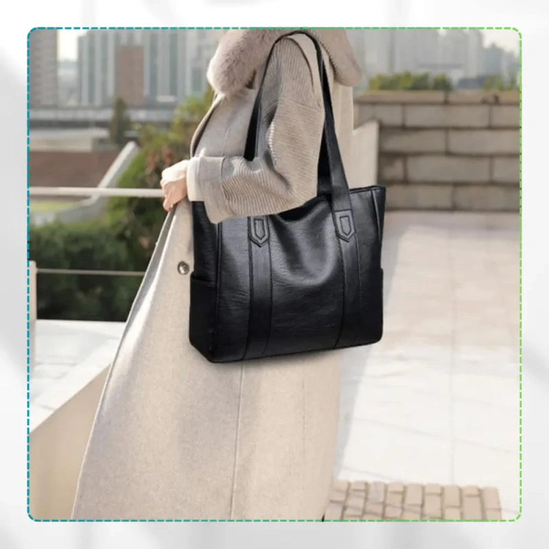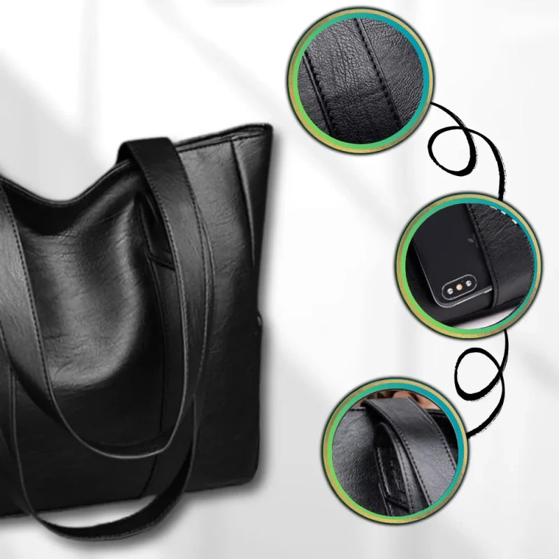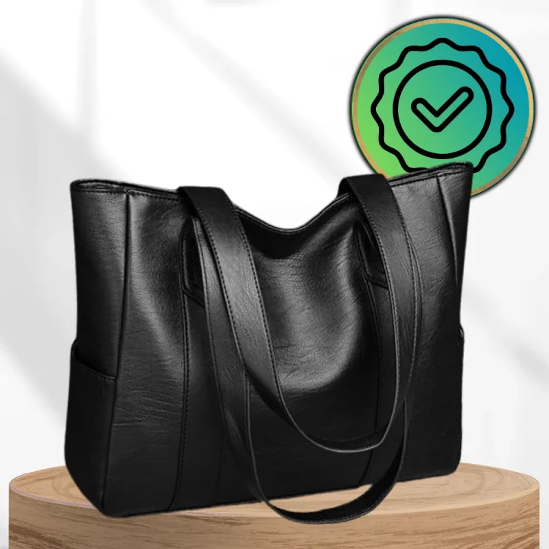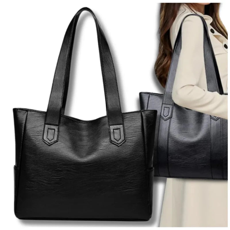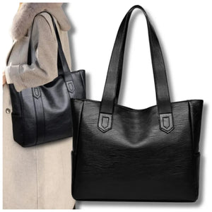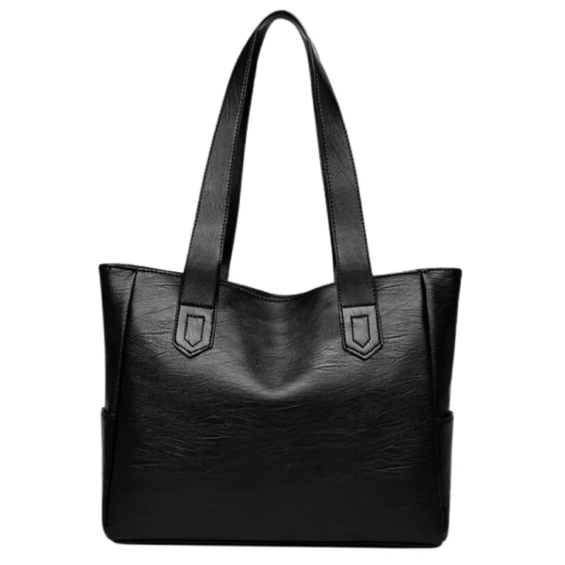 Ši elegantiška juodos spalvos eko odos rankinė puikiai dera prie bet kokio stiliaus.