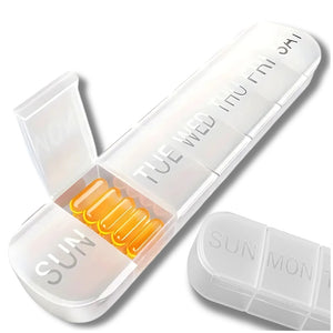 Ši vaistų dėžutė yra puikus sprendimas savaitės vaistams ar papildams tvarkingai sudėti. Ji padeda užtikrinti, kad niekada nepamiršite išgerti reikiamų vaistų ar papildų.
