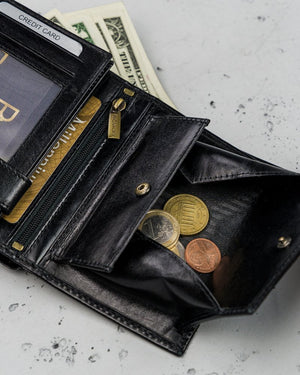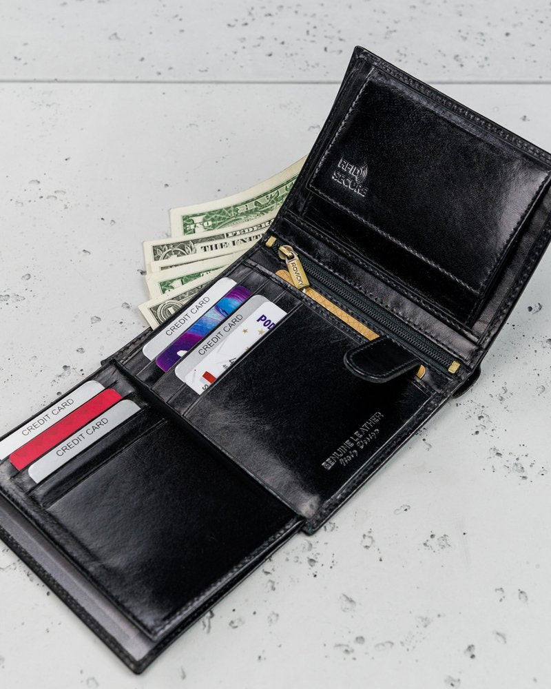 Piniginė yra sukurta taip, kad būtų patogi ir funkcionali, turinti pakankamai vietos jūsų kortelėms ir gryniesiems pinigams. Be to, integruota RFID apsauga padeda apsaugoti jūsų asmeninius duomenis nuo neteisėto nuskaitymo.