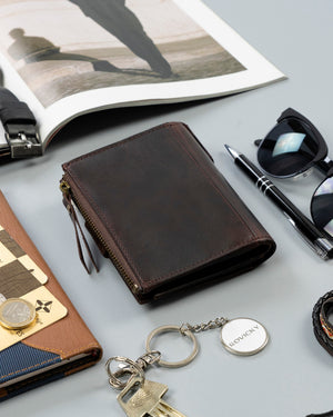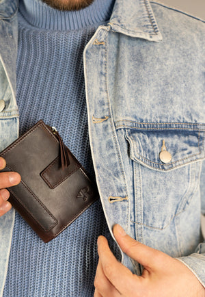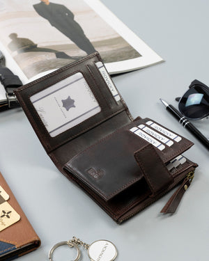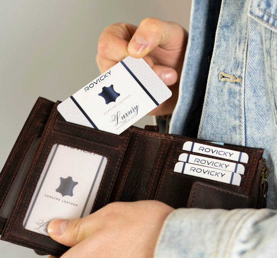 Ši vyriška odinė piniginė Rovicky RV63 yra puikus pasirinkimas tiems, kurie vertina kokybę ir funkcionalumą. Pagaminta iš natūralios odos, ji ne tik atrodo elegantiškai, bet ir yra patvari. Tamsiai ruda spalva suteikia klasikinį ir stilingą įvaizdį. Piniginė yra didelio dydžio, todėl joje lengvai tilps visos jūsų kortelės ir grynieji pinigai. Su 6-10 kortelių skyriais ir RFID apsauga, jūsų asmeniniai duomenys bus saugūs. Išmatavimai 12,5 cm x 10 cm x 2 cm užtikrina, kad piniginė patogiai tilps į kišenę ar krepšį.