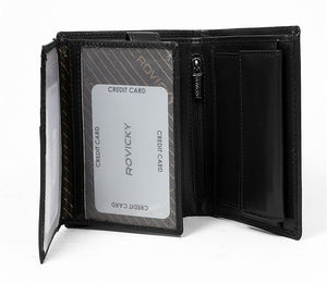 Ši vyriška odinė piniginė Rovicky RV75 yra puikus pasirinkimas tiems, kurie vertina kokybę ir stilių. Pagaminta iš natūralios odos, ji pasižymi elegantiška juoda spalva ir dideliu dydžiu, kuris užtikrina pakankamai vietos jūsų kortelėms ir gryniesiems. Piniginėje yra 6-10 kortelių skyrių, tačiau neturi RFID apsaugos. Jos išmatavimai yra 13 cm x 10 cm x 2,5 cm, todėl ji patogiai telpa į kišenę ar krepšį.