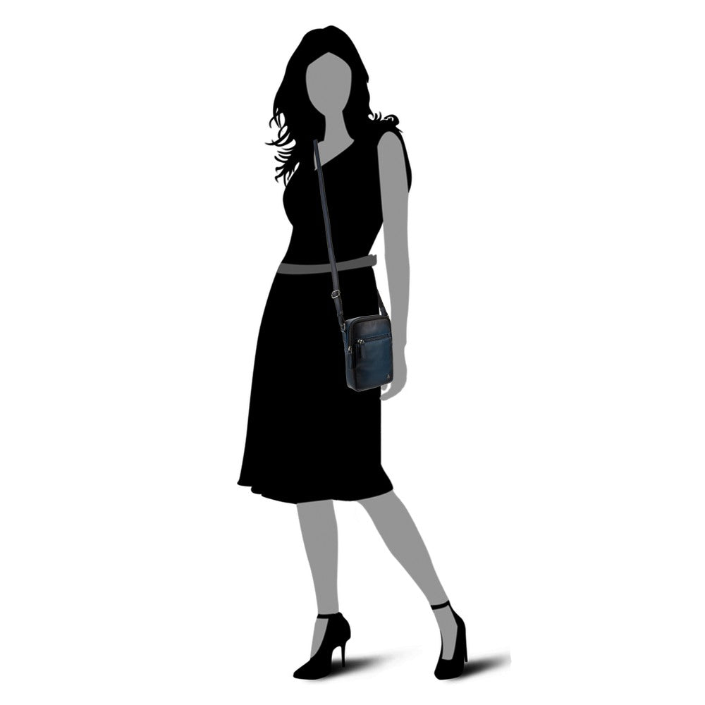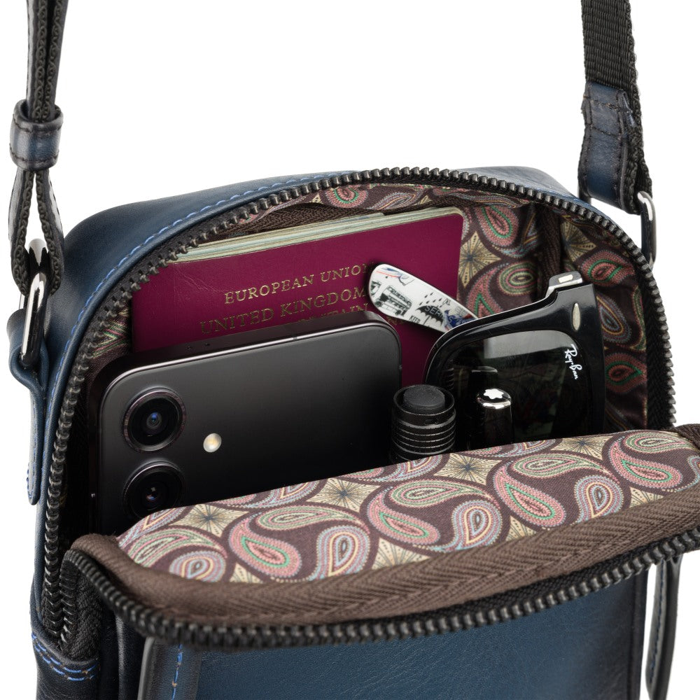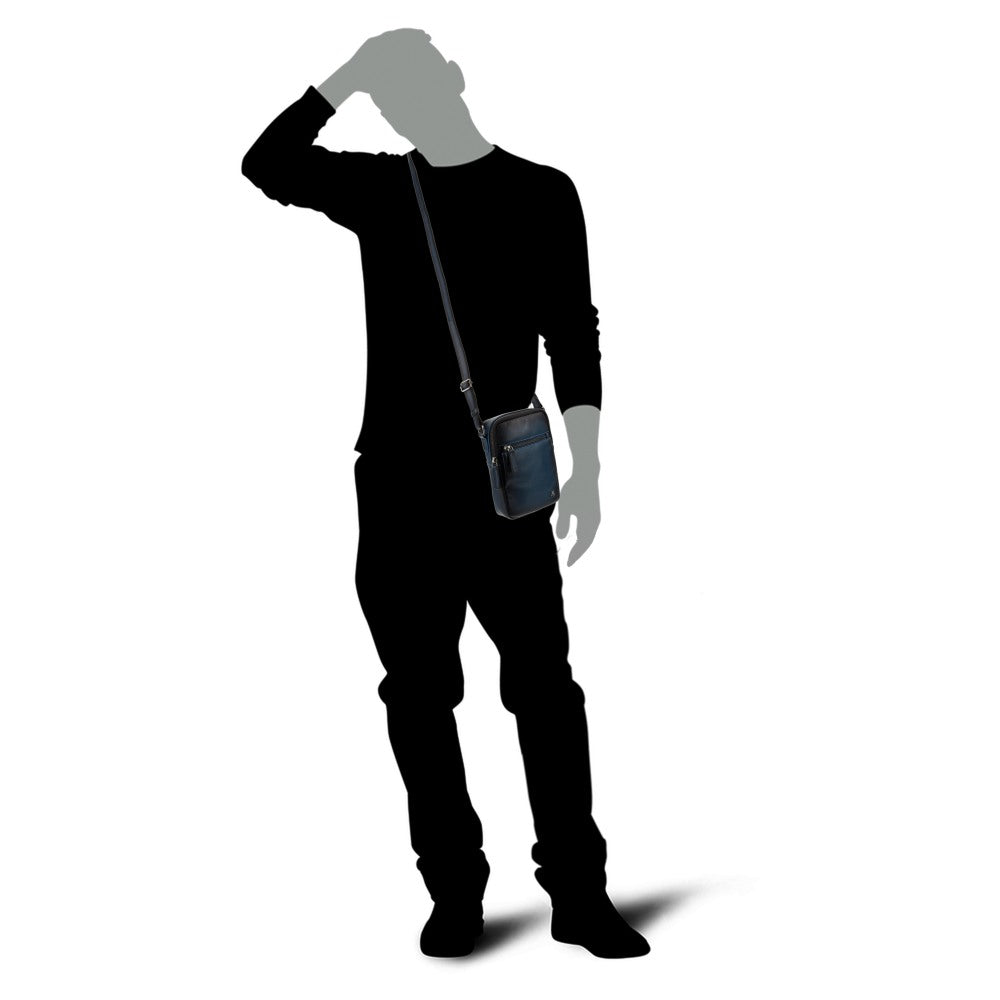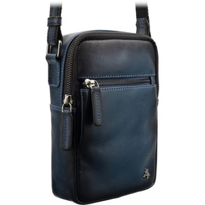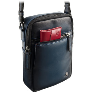 Vyriška odinė rankinė per petį, Visconti AT-43, mėlyna