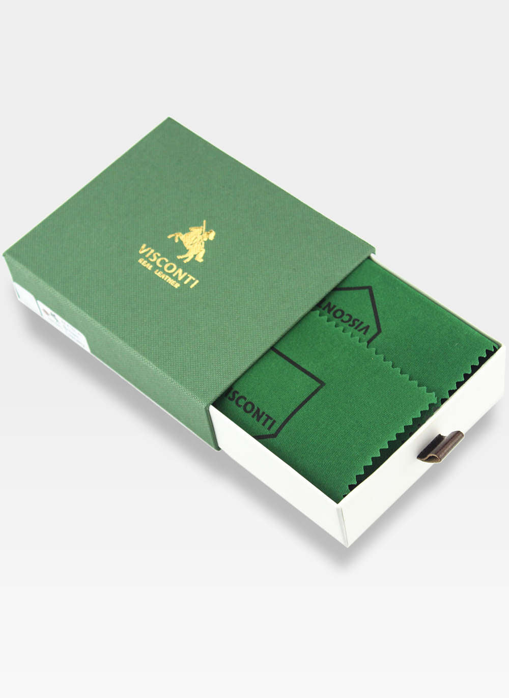 Piniginė yra su prabangiu Visconti prekės ženklo pamušalu, kuris suteikia papildomo rafinuotumo. Ji bus pristatyta elegantiškoje dėžutėje, todėl puikiai tinka dovanai.