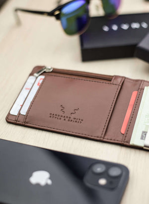 Piniginė sukurta taip, kad būtų pakankamai vietos viskam, ko reikia, tačiau išliktų kompaktiška ir plona. Intelektualus kortelių, pinigų segtuko ir monetų kišenės išdėstymas užtikrina patogų naudojimą.