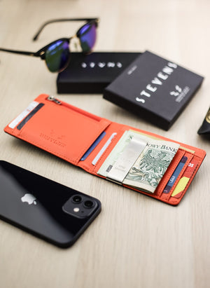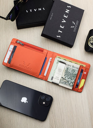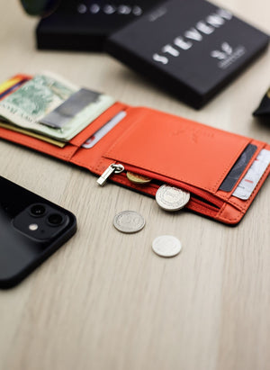 Jei pavargote nuo storų piniginių, šis modelis yra jums. Jis yra itin plonas, tačiau talpus, su minimaliais, bet būtinais skyreliais asmens tapatybės kortelei, vairuotojo pažymėjimui ir mokėjimo kortelei. Viduje taip pat rasite specialų segtuką banknotams ir užtrauktuku užsegamą monetų kišenę.