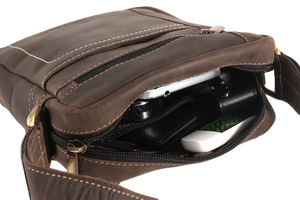Vyriška rankinė Always Wild yra puikus pasirinkimas tiems, kurie vertina kokybę ir stilių. Pagaminta iš natūralios odos, ši rankinė yra ne tik patvari, bet ir elegantiška. Jos kompaktiški matmenys ir funkcionalios kišenės leidžia patogiai laikyti būtiniausius daiktus, o reguliuojamas diržas suteikia papildomą komfortą. Tamsiai ruda spalva puikiai dera su įvairiais drabužių deriniais, todėl ši rankinė taps nepakeičiamu kasdienio stiliaus akcentu.