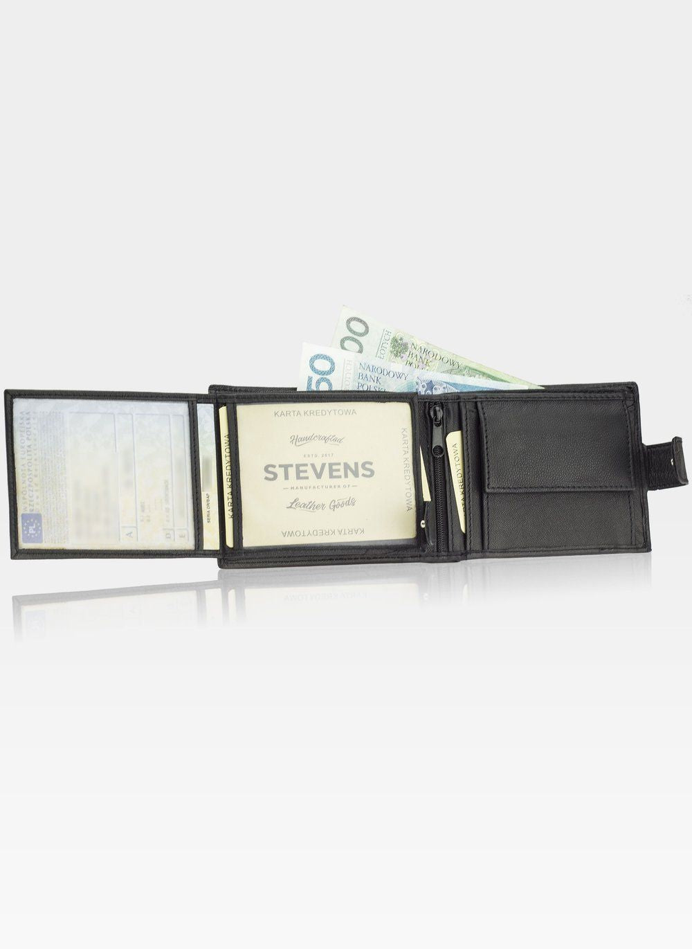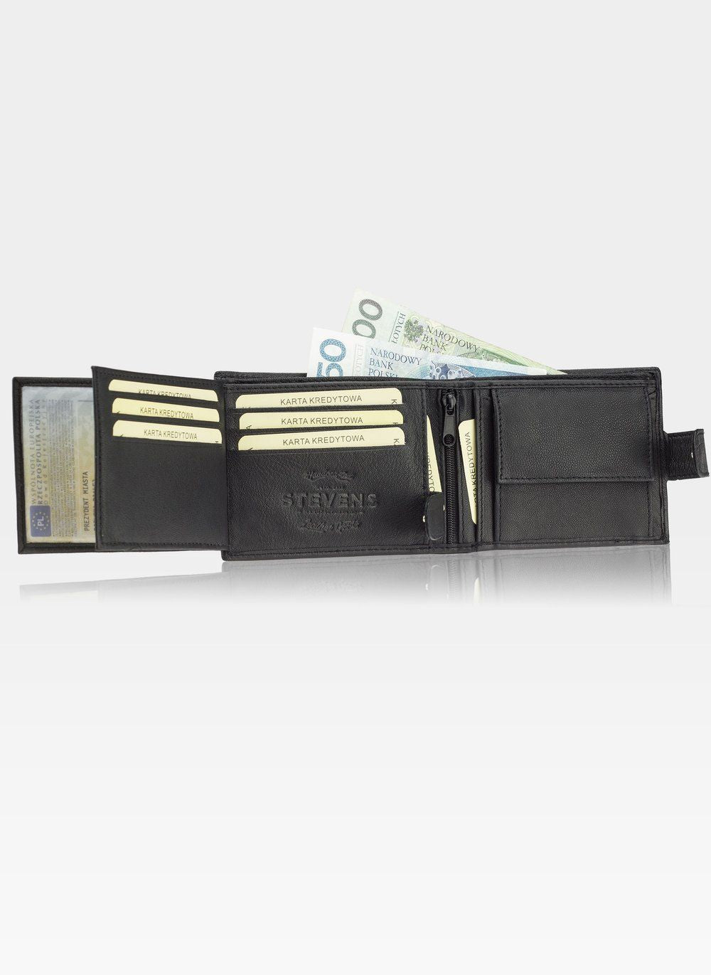 - 1 užsegamas skyrius piniginės viduryje