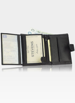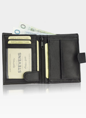 - Papildoma apsauga: kairioji piniginės dalis su kortelėmis ir dokumentais užsegama užsegimu