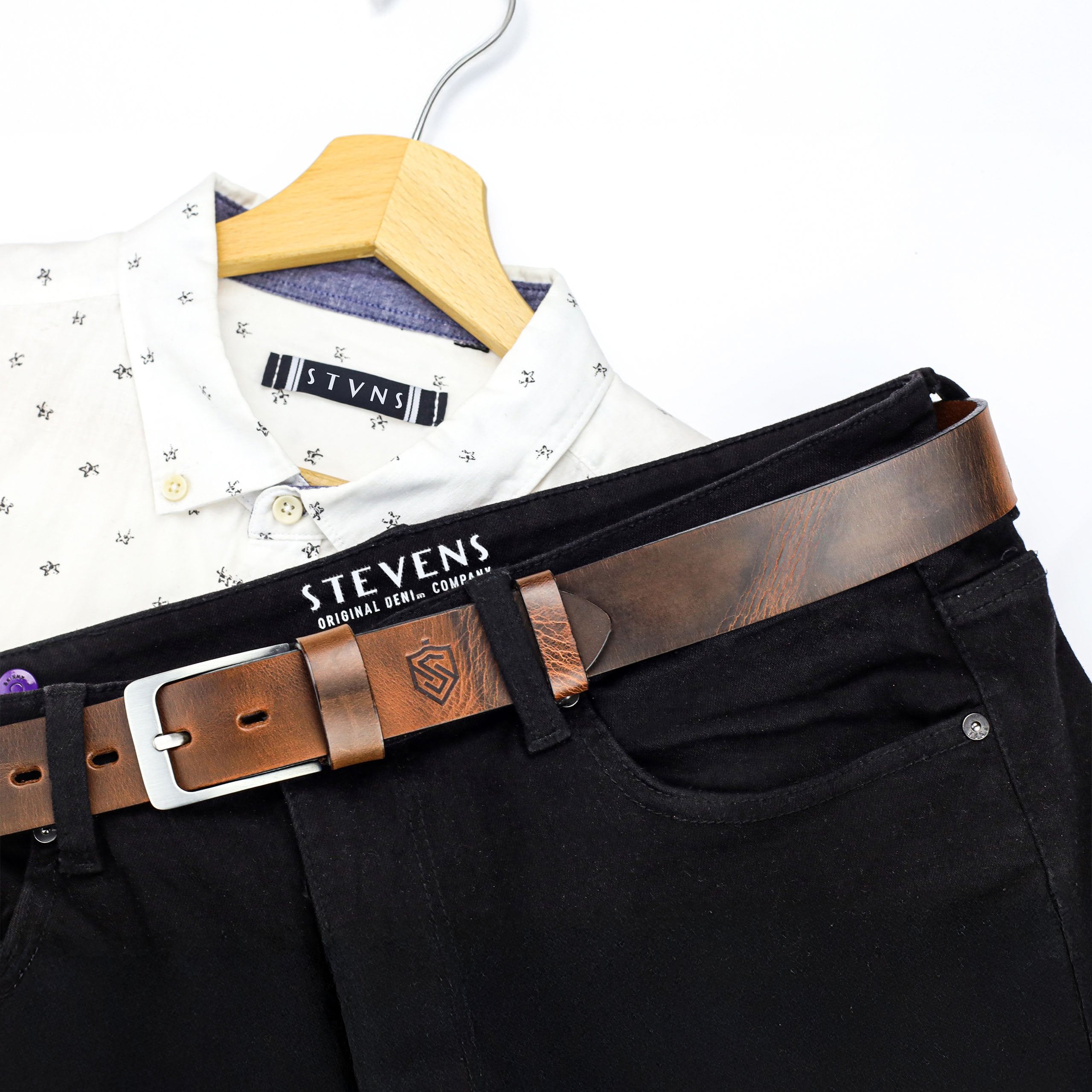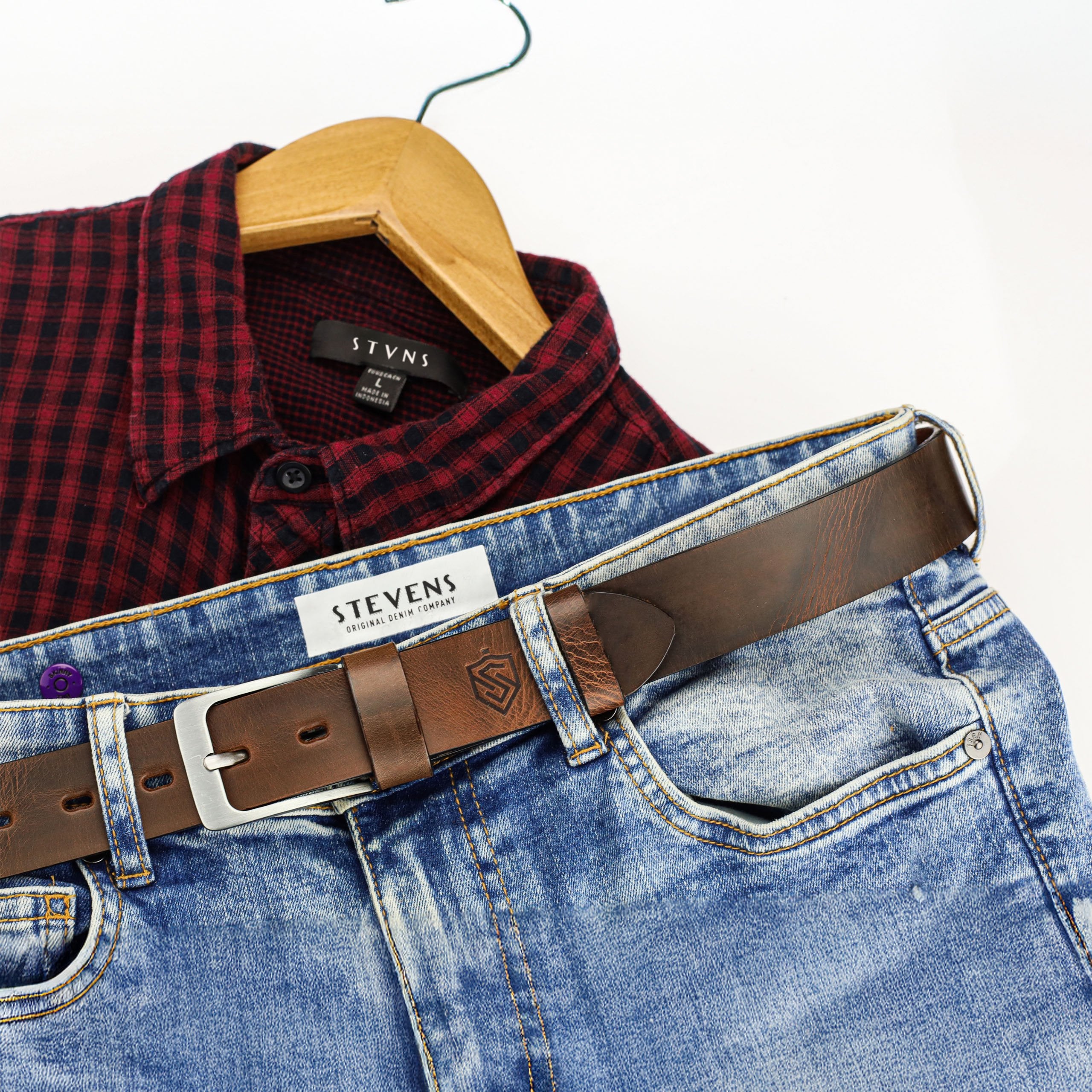 Vyriškas odinis diržas STEVENS tamsiai rudas D41