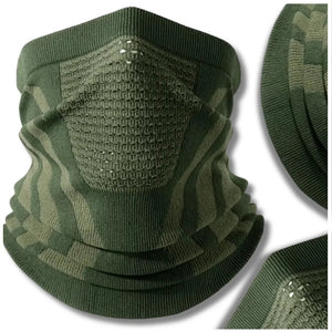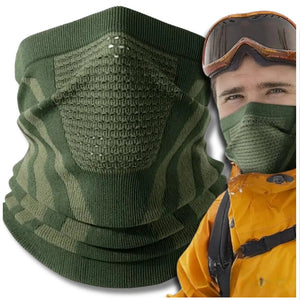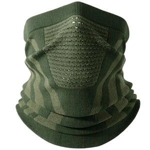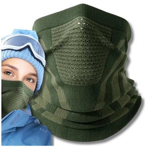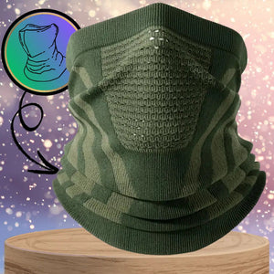 Žalias žieminis kaklo šildytuvas ir kaukė