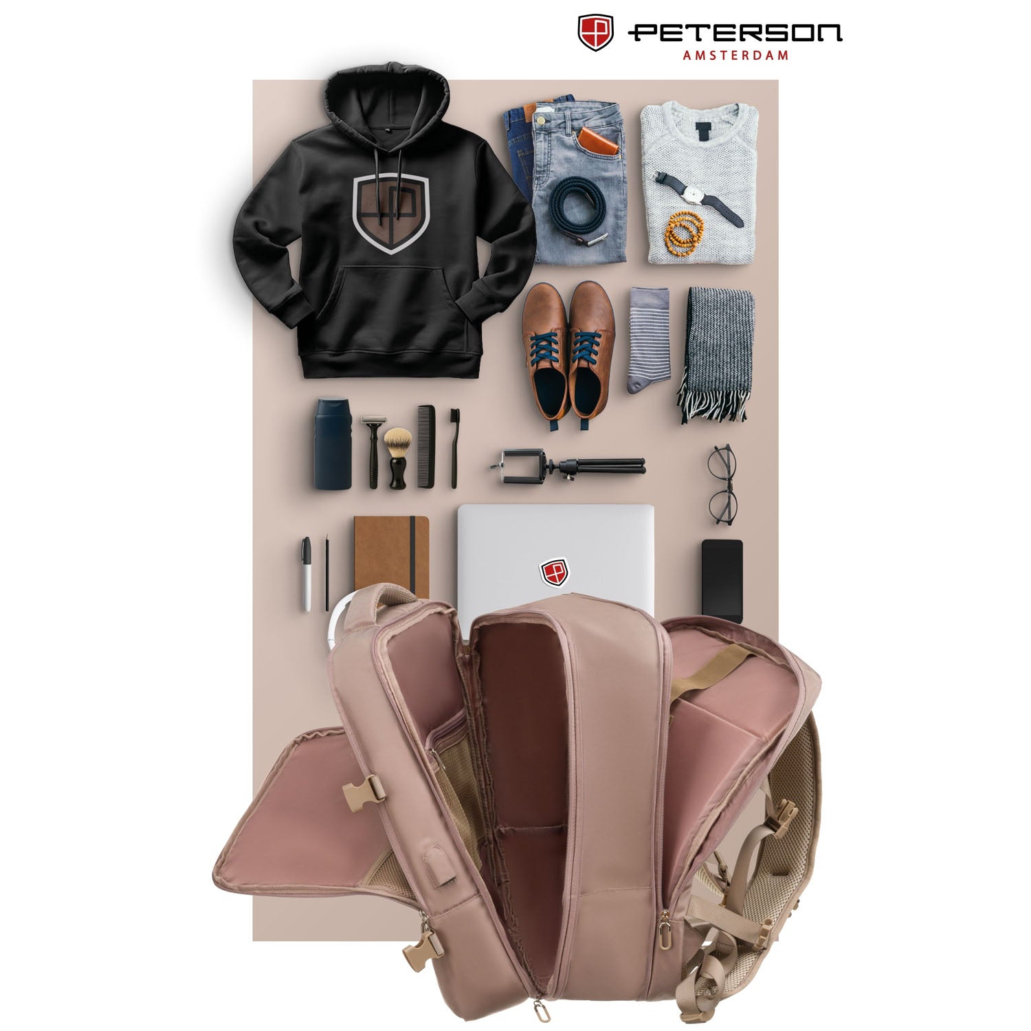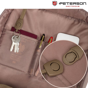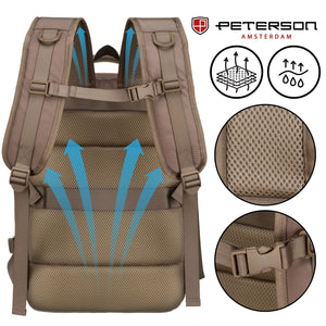 Peterson tamsiai smėlio spalvos didelė kuprinė su skyriais, puikiai tinkanti kasdieniam naudojimui.