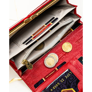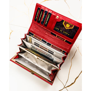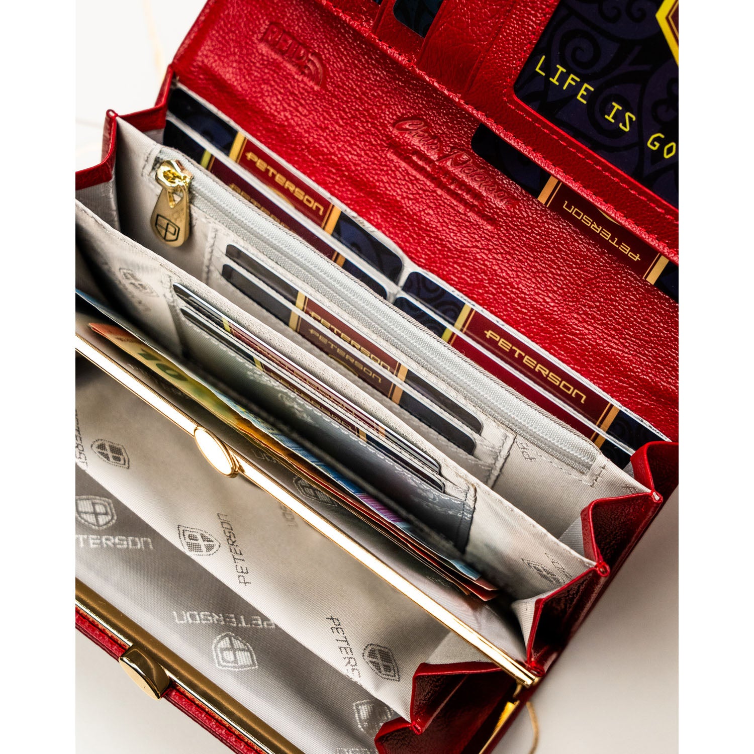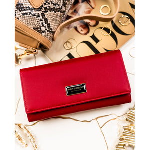 Peterson raudona moteriška piniginė iš dirbtinės odos su RFID apsauga.