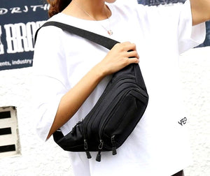 Juosmens krepšys turi keturis skyrius su užtrauktuku