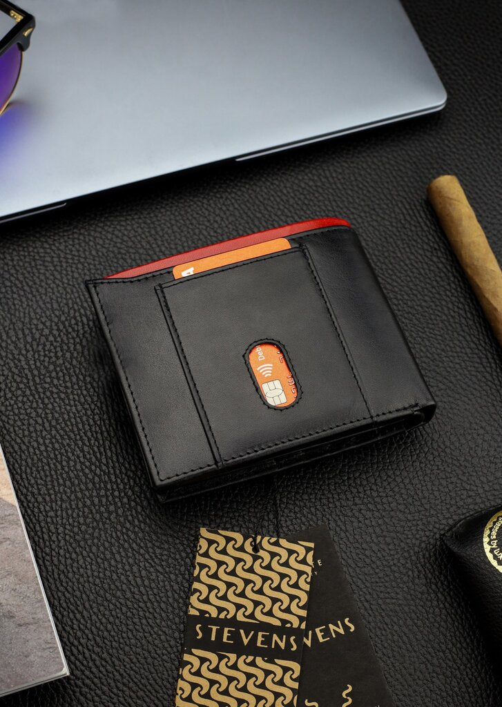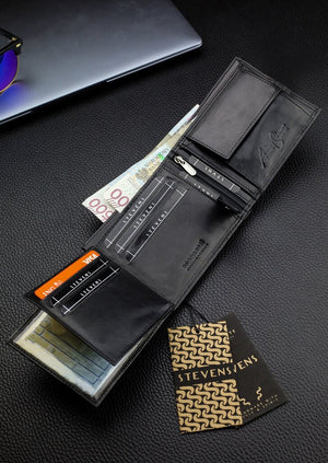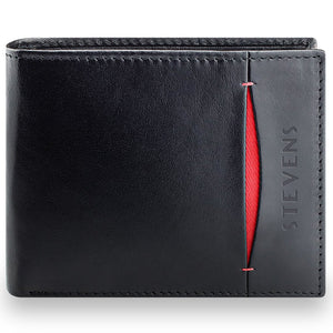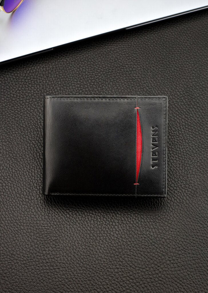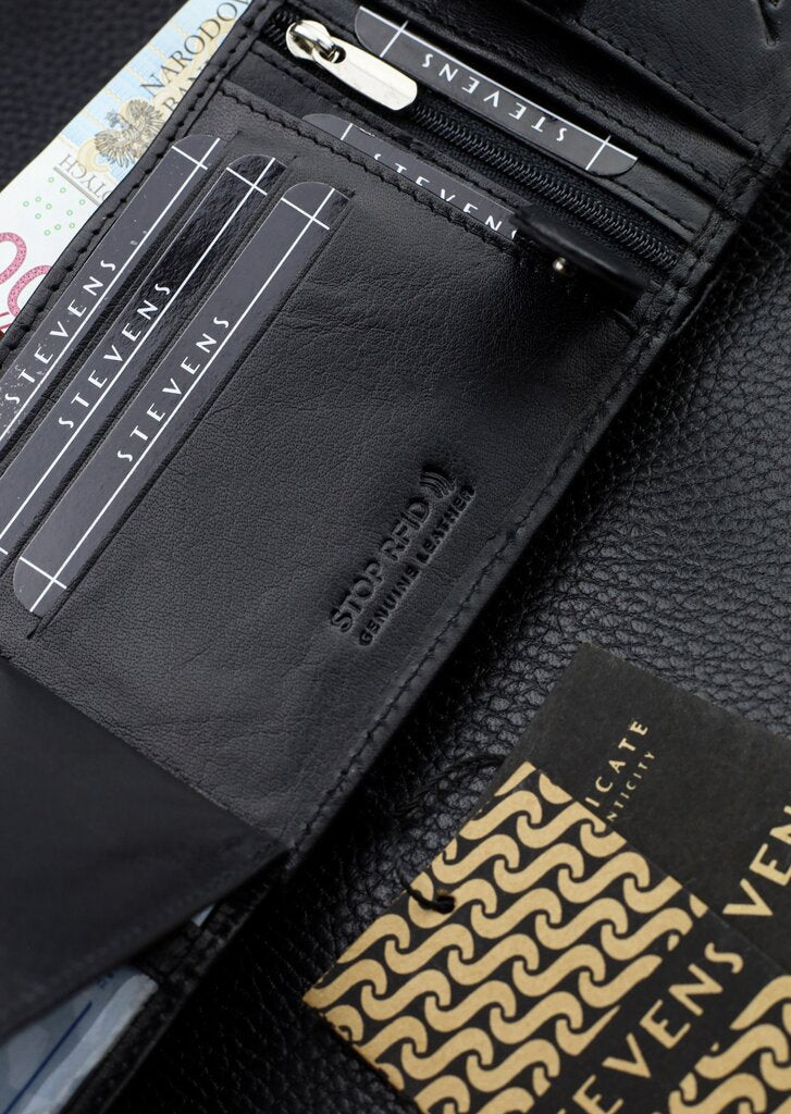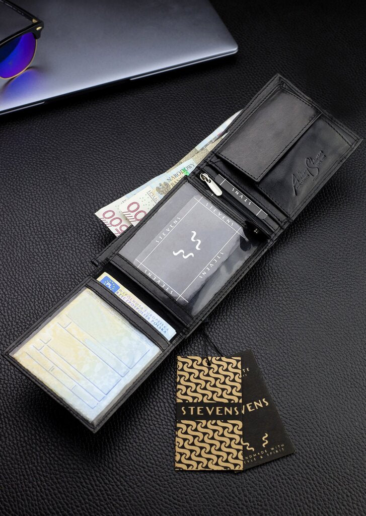 Vyriška piniginė STEVENS, natūrali oda, RFID apsauga, juoda