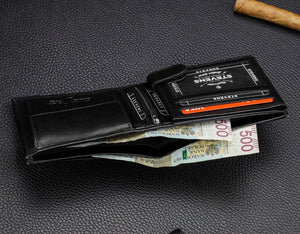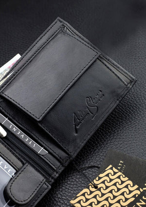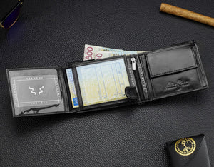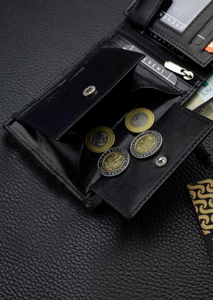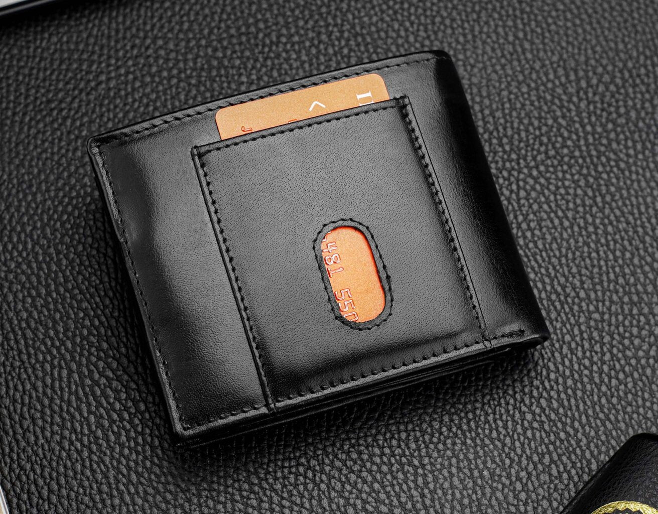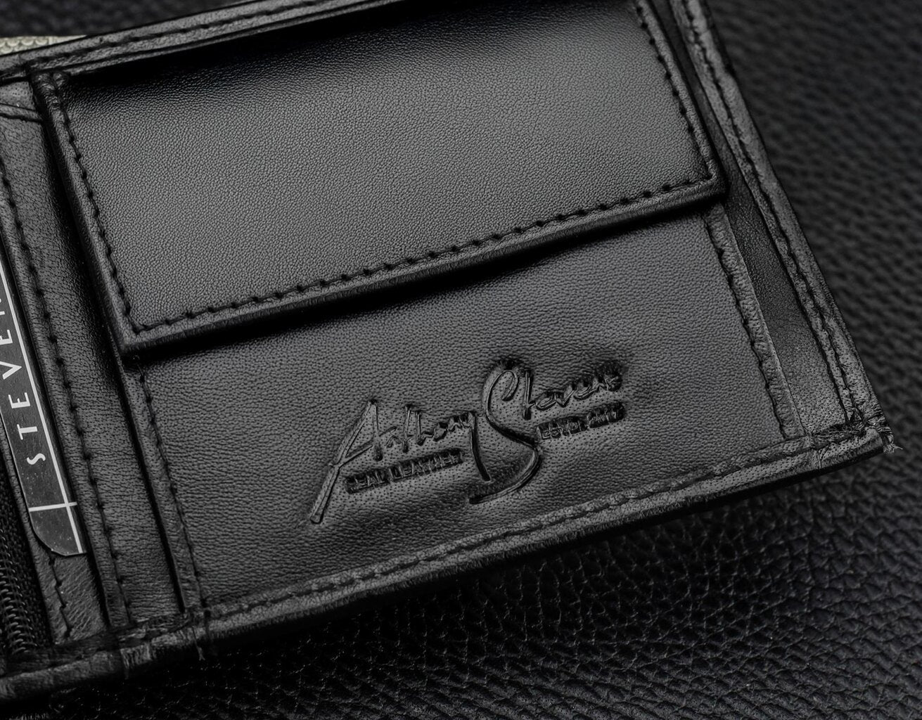 Vyriška piniginė STEVENS, natūrali oda, RFID apsauga, juoda