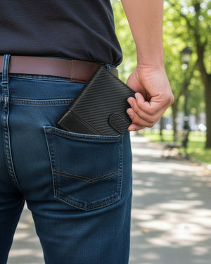 Piniginė pasižymi kruopščiu siuvimu ir švariai užbaigtomis siūlėmis. Tvirta konstrukcija padeda išlaikyti formą, o karbono tekstūra mažiau linkusi rodyti smulkius įbrėžimus ir dėvėjimo žymes.