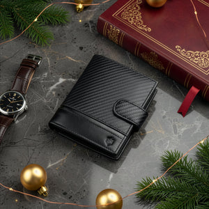 Vyriška piniginė STEVENS® CARBON, natūrali oda, RFID, juoda