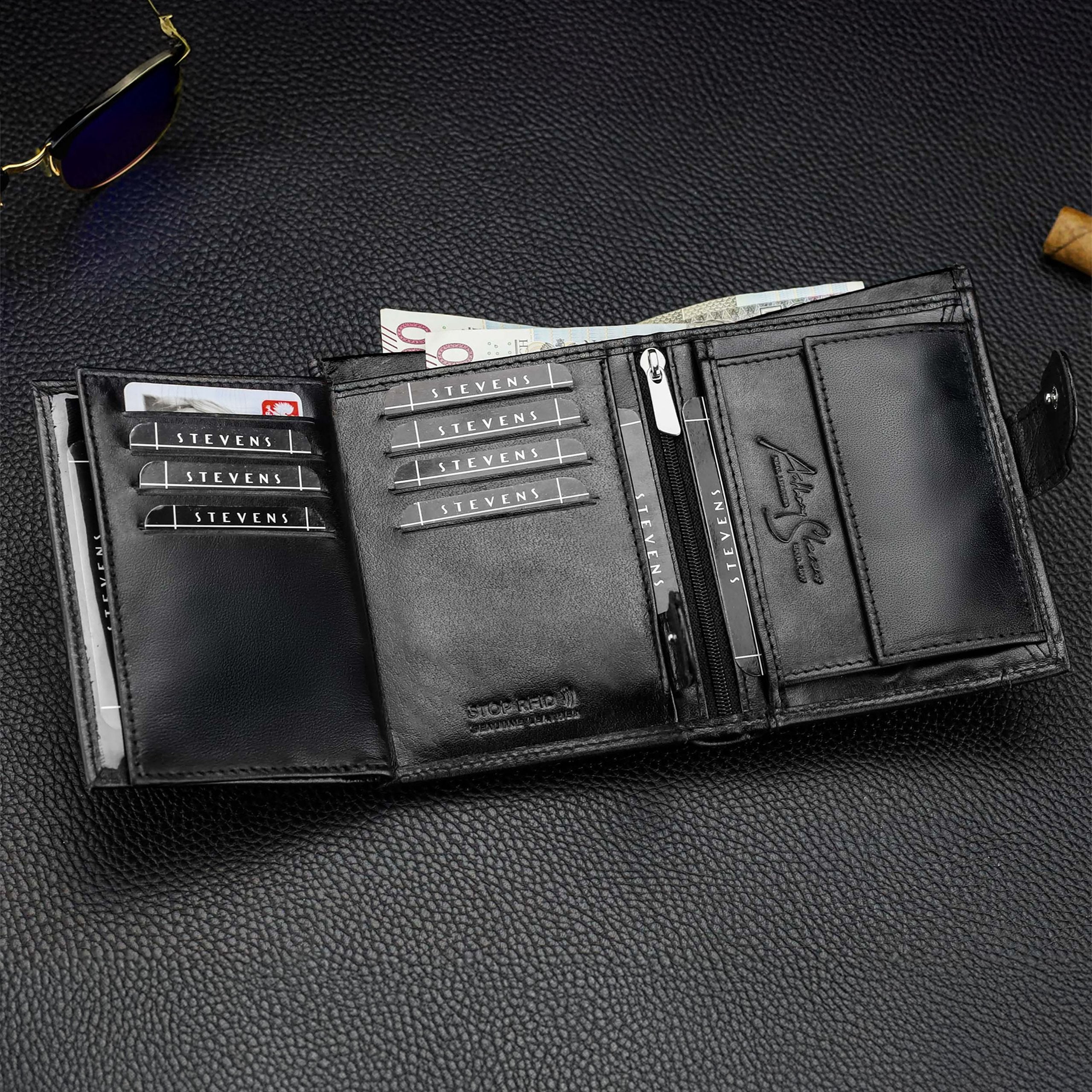 Vyriška odinė piniginė Stevens Carbon, juoda, su RFID apsauga 02-326A-R
