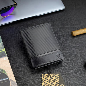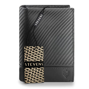 Vyriška odinė piniginė Stevens, juoda, su anglies pluošto danga ir RFID apsauga 02-326-R