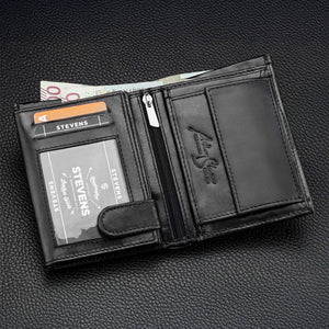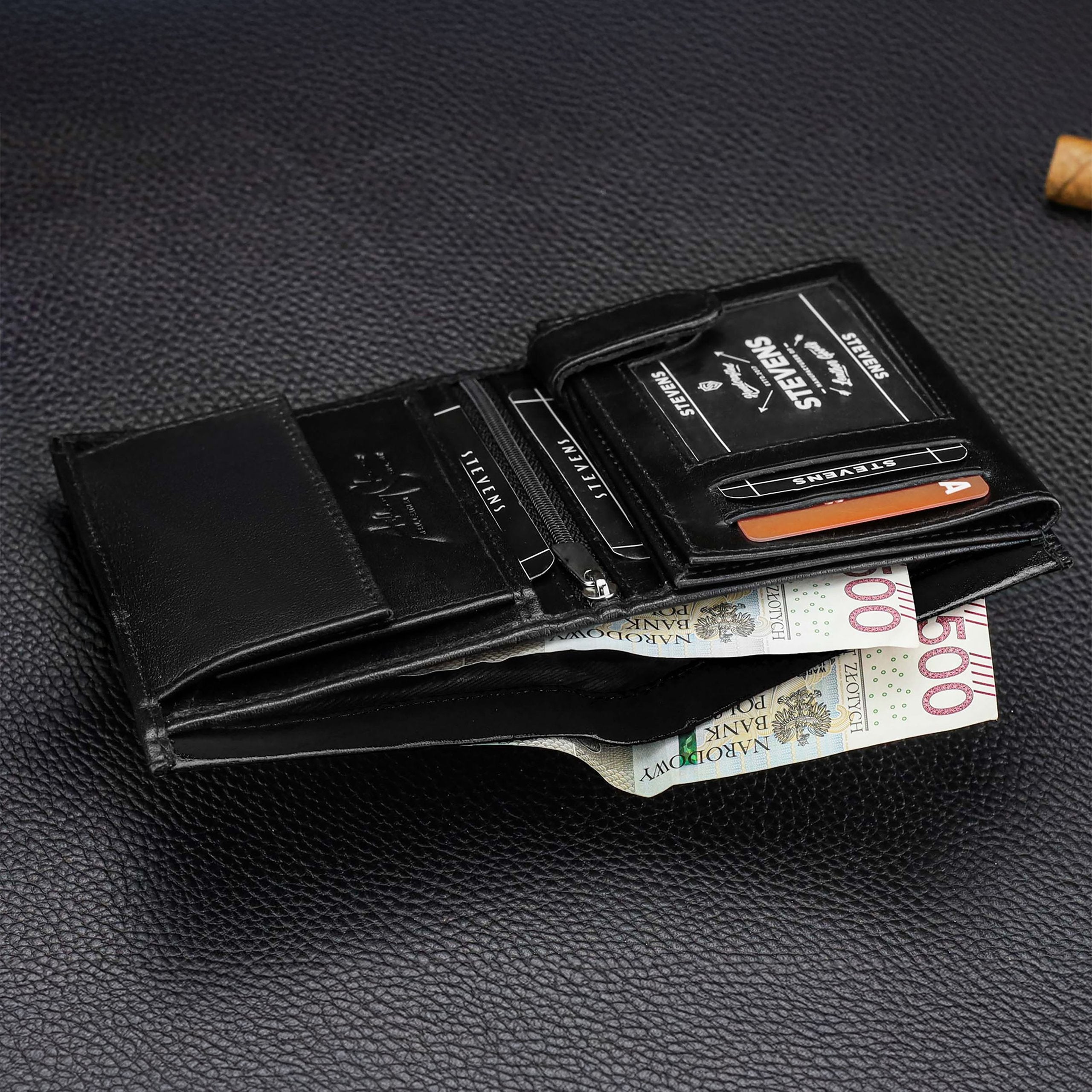 Piniginė supakuota į standžią, elegantišką STEVENS® dėžutę. Patogu dovanoti gimtadienio, Kalėdų, tėvo dienos ar jubiliejaus proga – nereikia papildomo pakavimo.