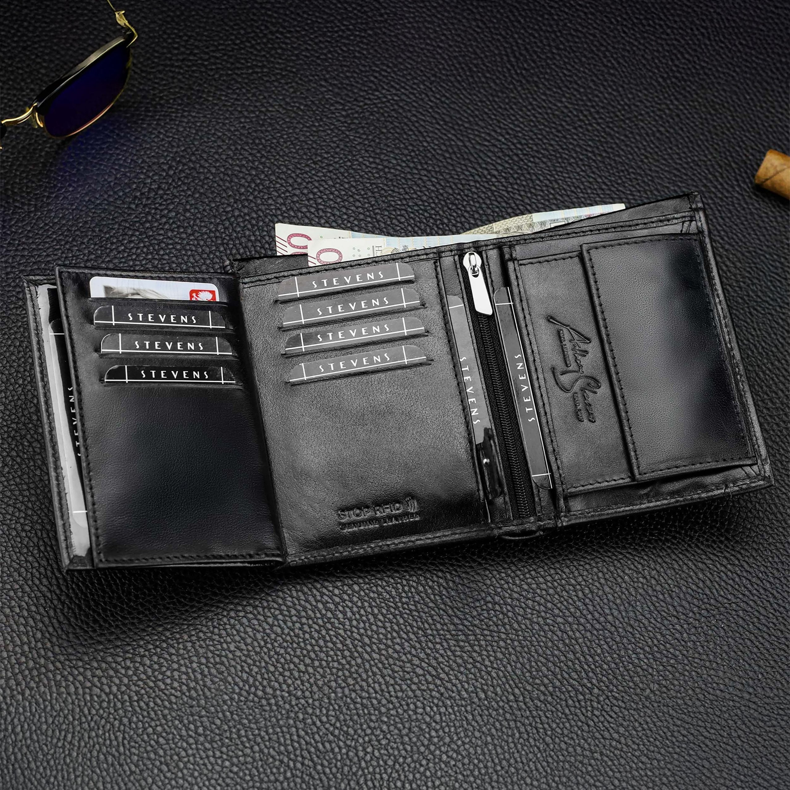 Vyriška piniginė STEVENS CARBON, natūrali oda, RFID, juoda