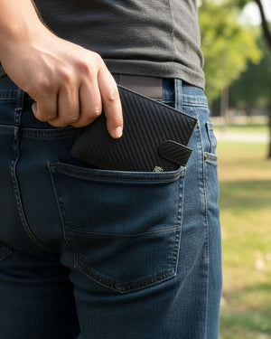 Dėl didelio atsparumo tempimui ir pažeidimams, karbono tipo medžiagos dažnai naudojamos sporto įrangoje ir kasdieniuose gaminiuose. Šioje piniginėje ši technologija sujungta su natūralia oda – gaunate ir tvirtumą, ir stilingą, šiuolaikišką išvaizdą.