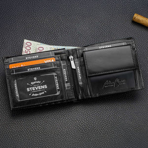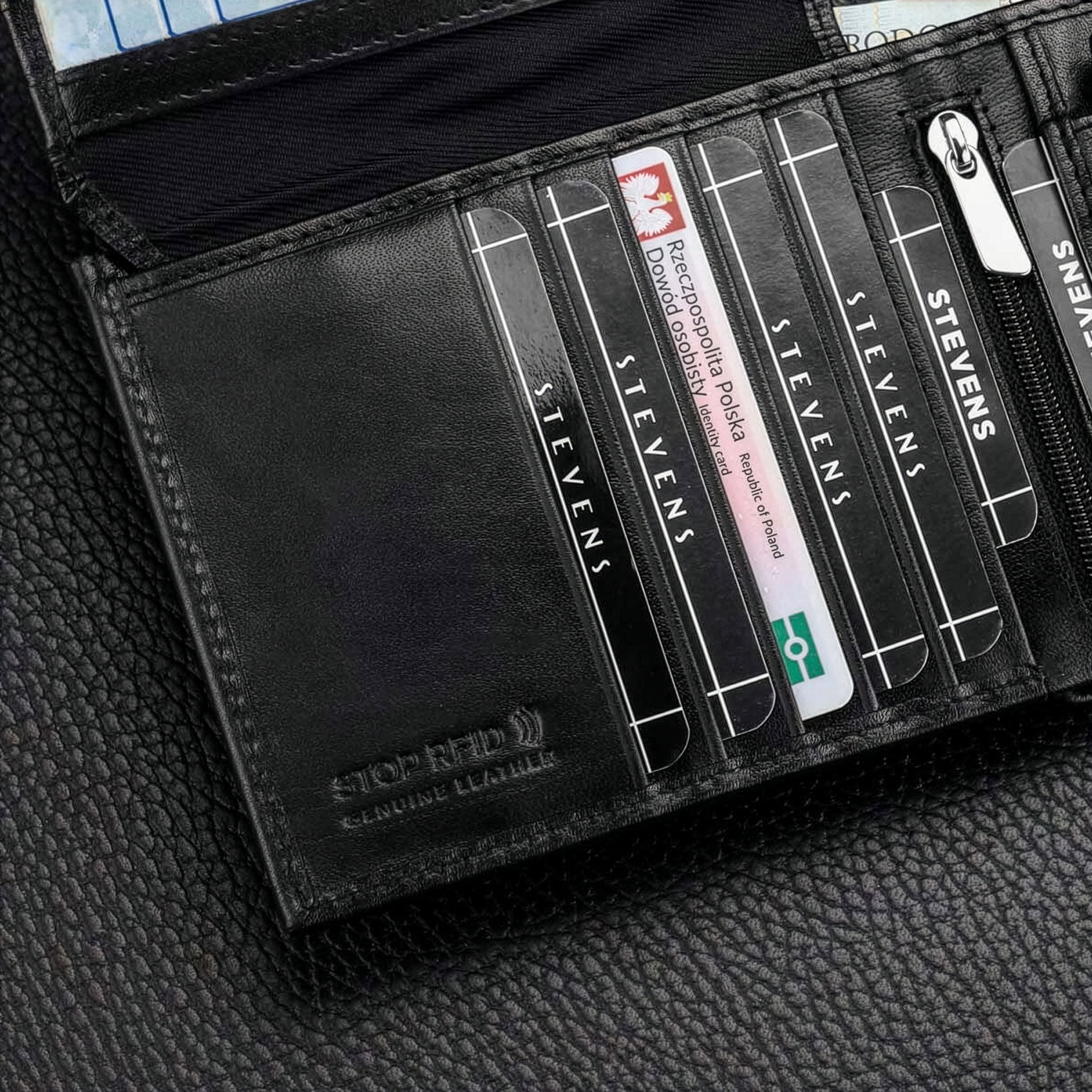 Vyriška odinė piniginė Stevens PREMIUM, juoda, su RFID apsauga 02-8888-R