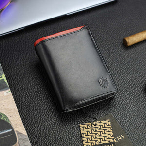 Vyriška odinė piniginė STEVENS su maišeliu, juoda, RFID apsauga Z06-326