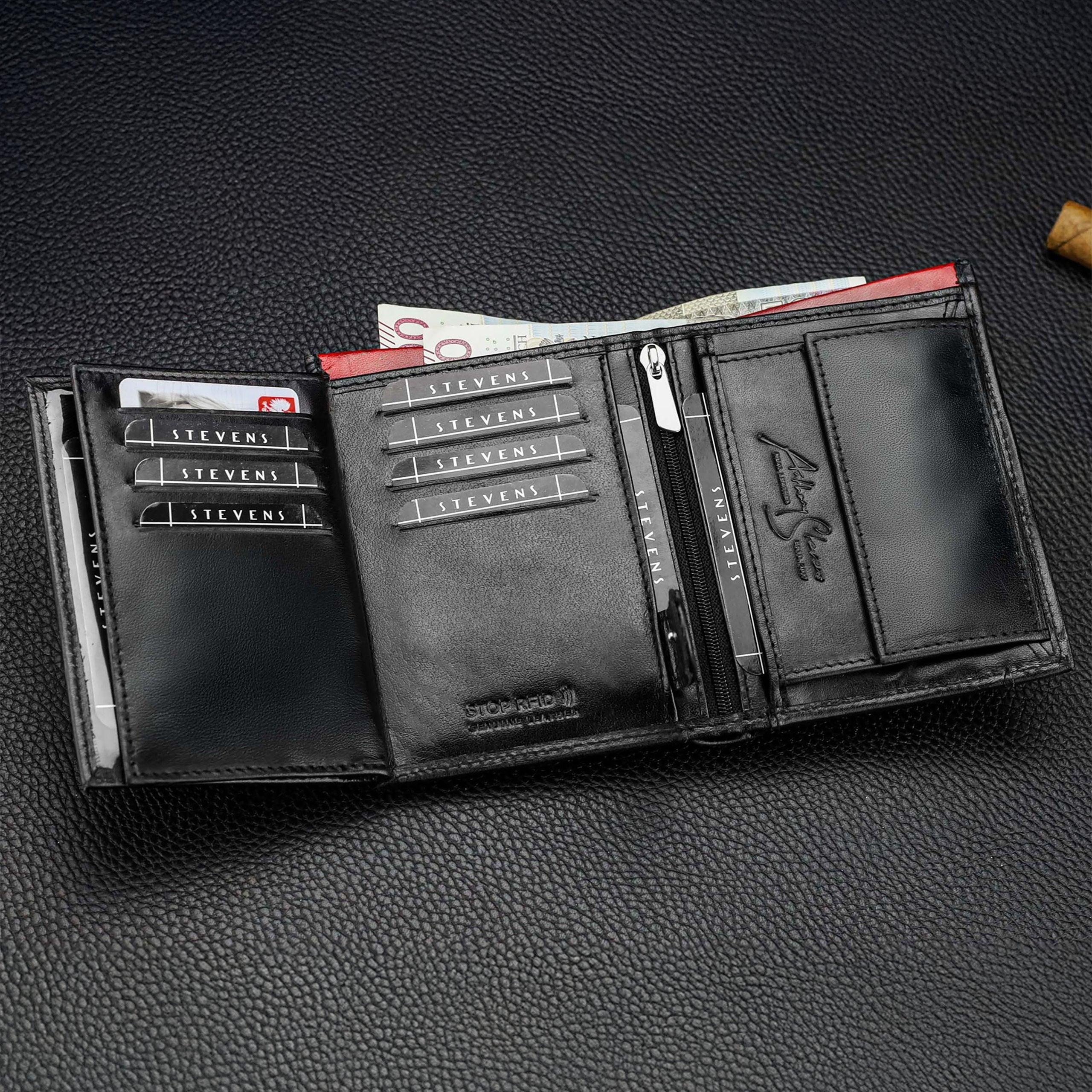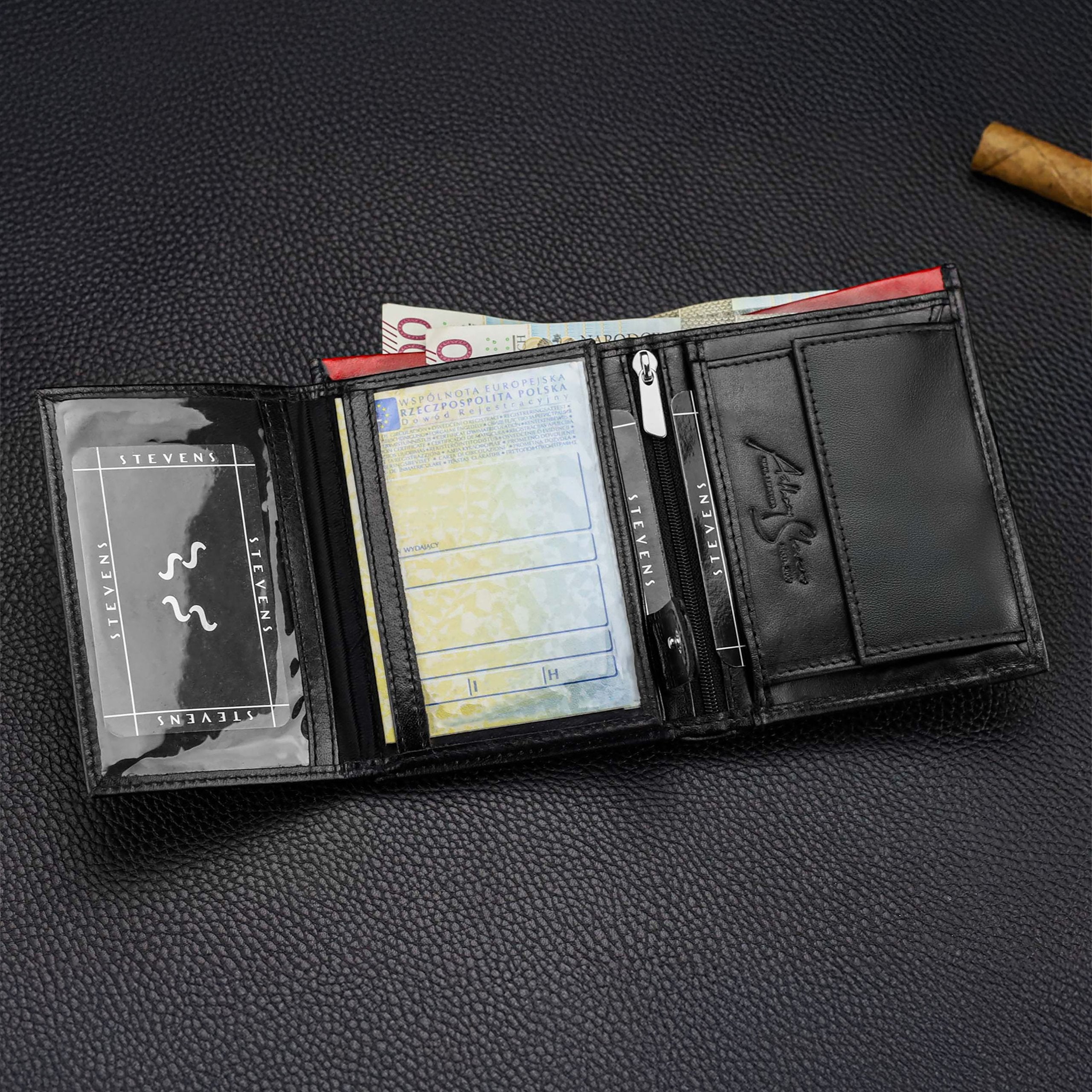 Vyriška piniginė STEVENS PREMIUM, natūrali oda, RFID, juoda, Q3