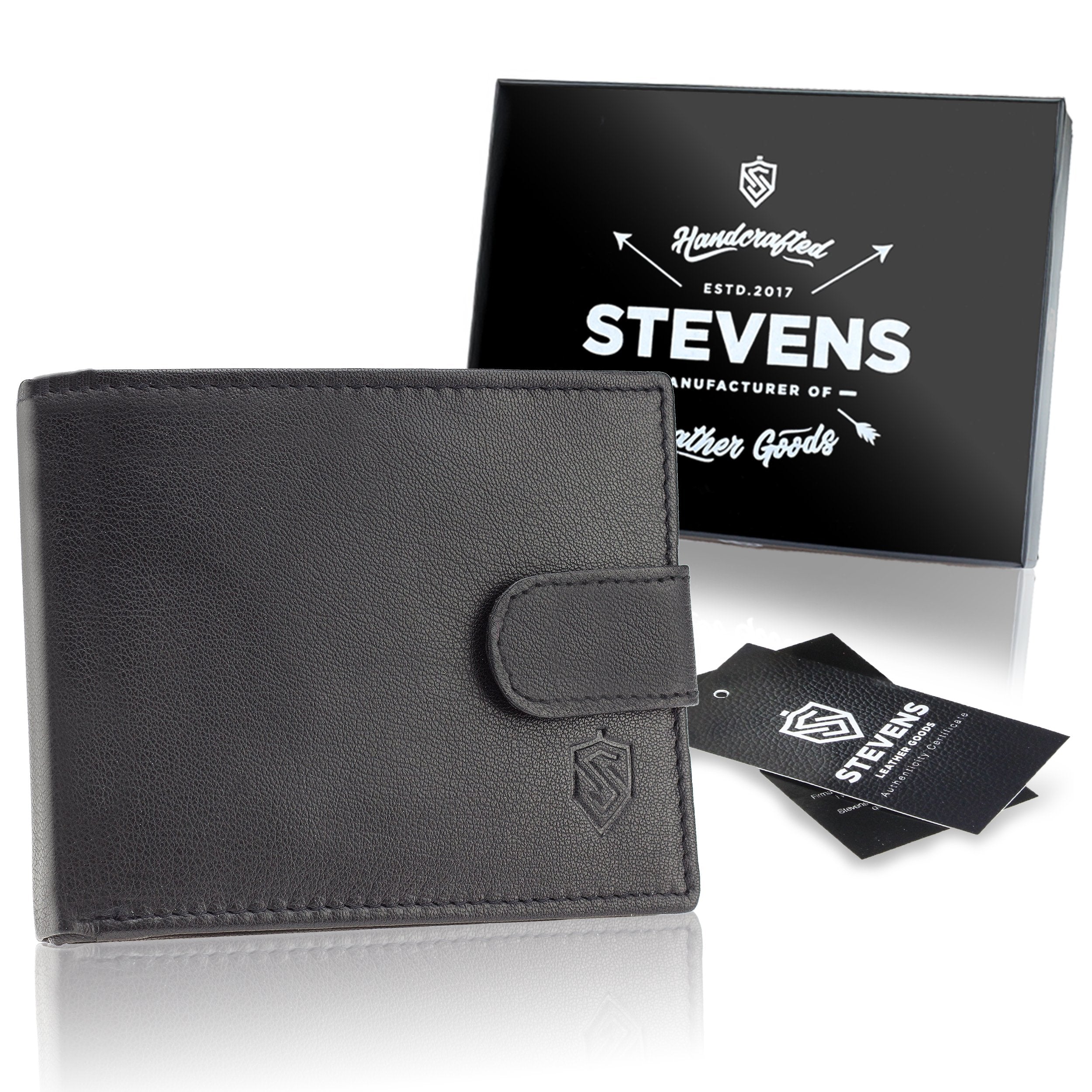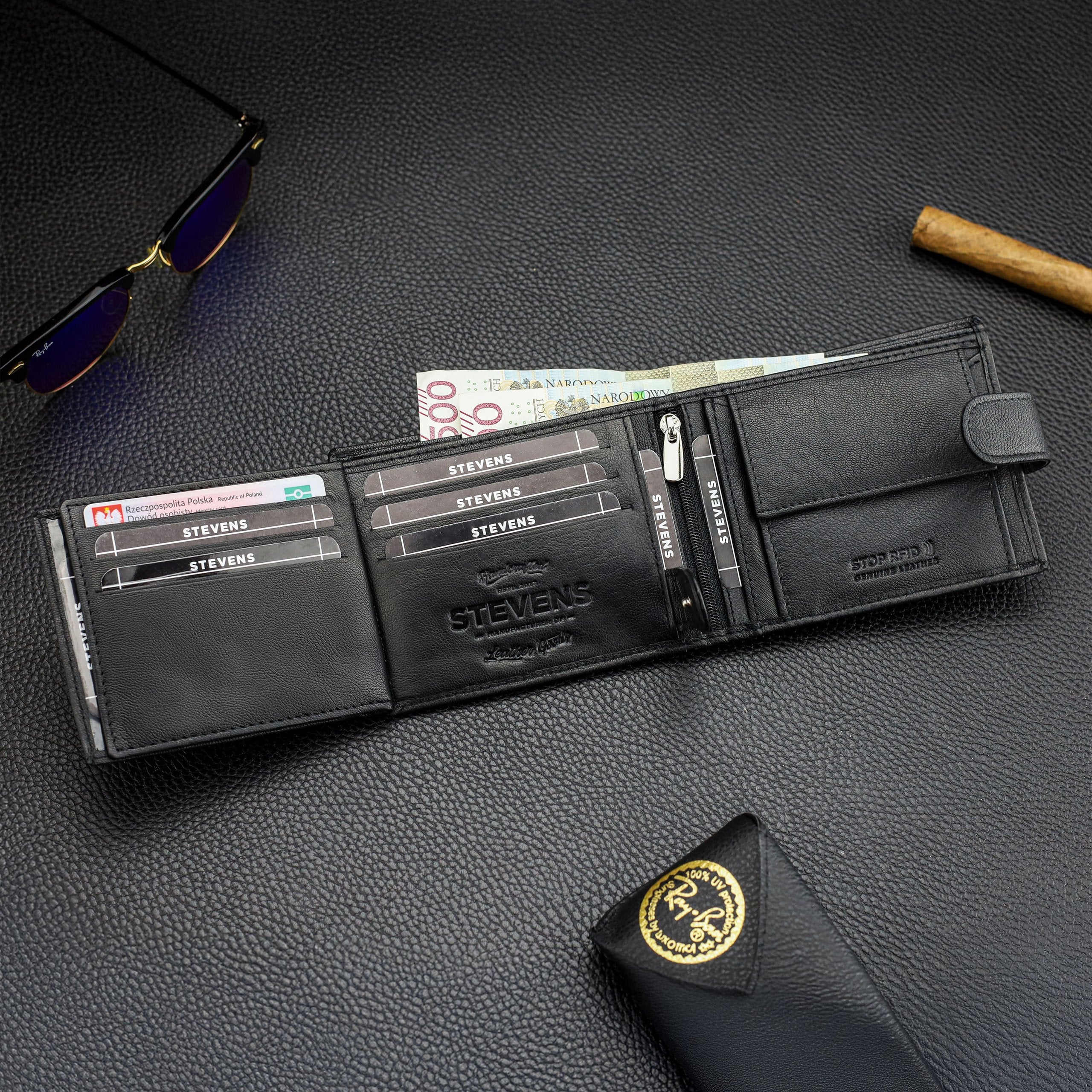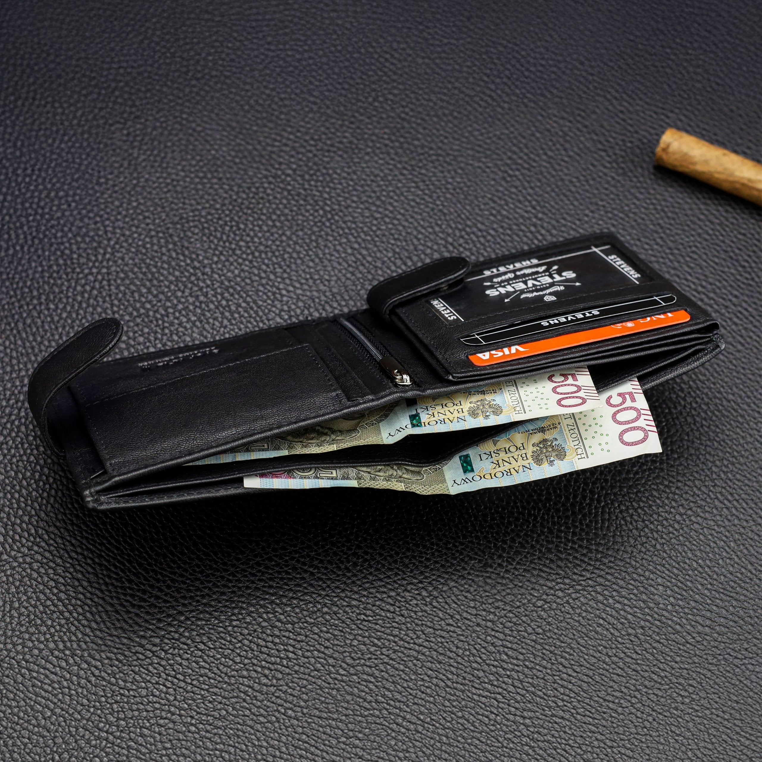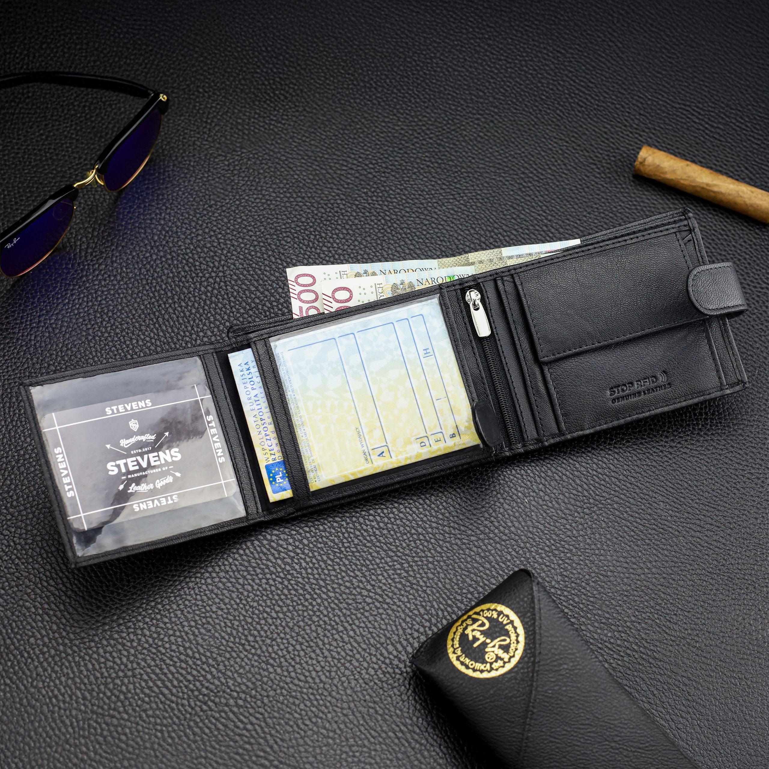 Vyriška odinė piniginė Stevens su RFID apsauga, juoda PREMIUM W-325A