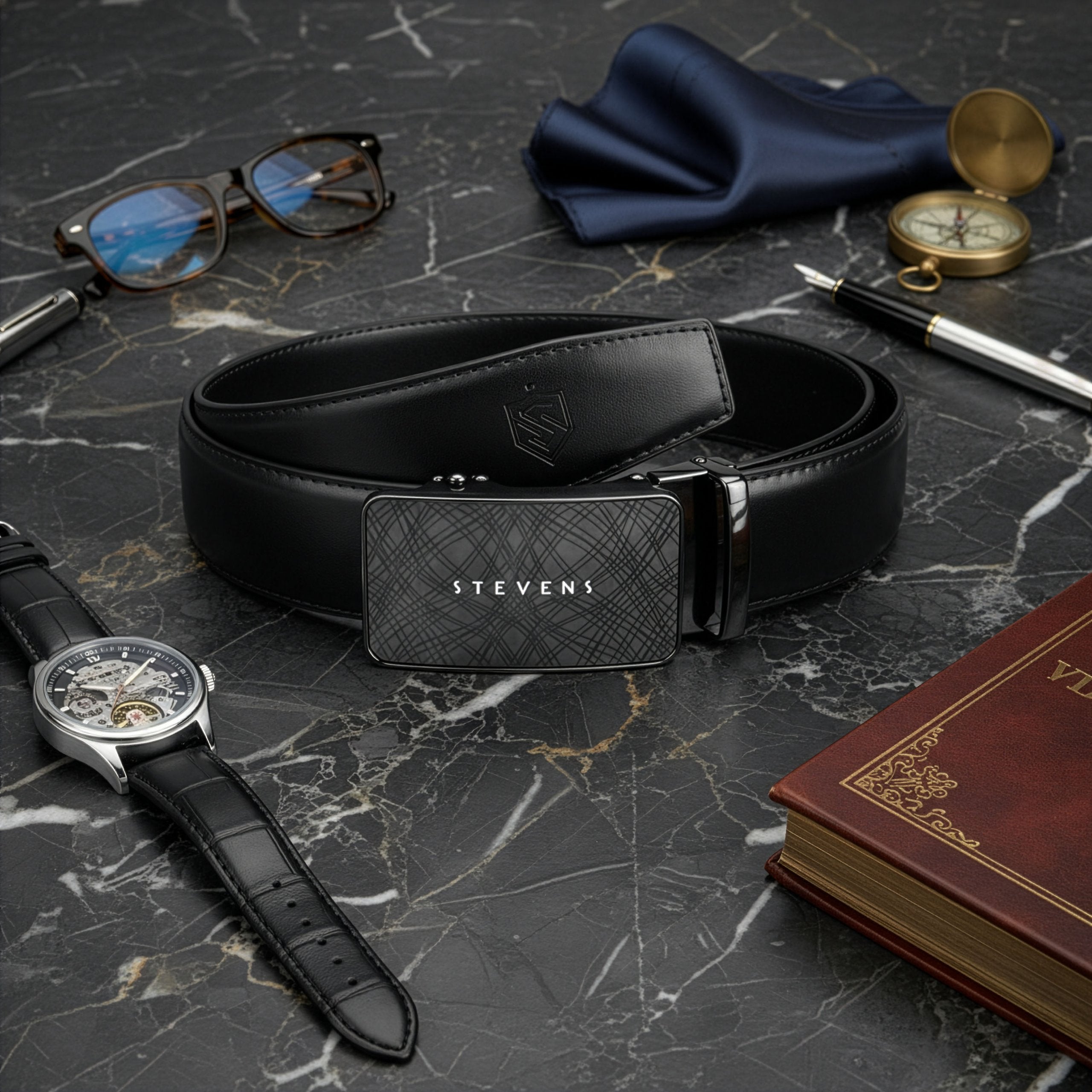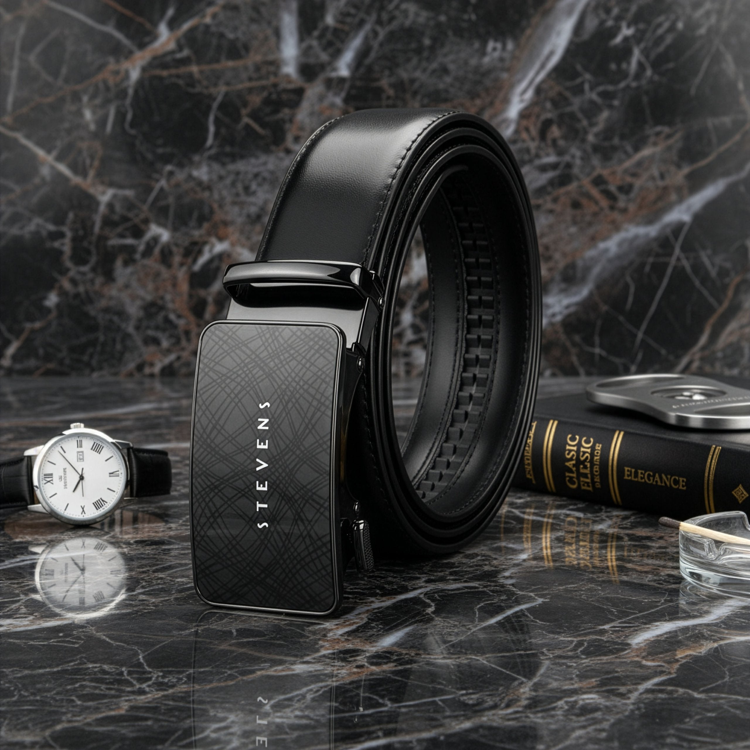 Vyriškas diržas Stevens, juodas, natūrali oda, automatinė sagtis 2506
