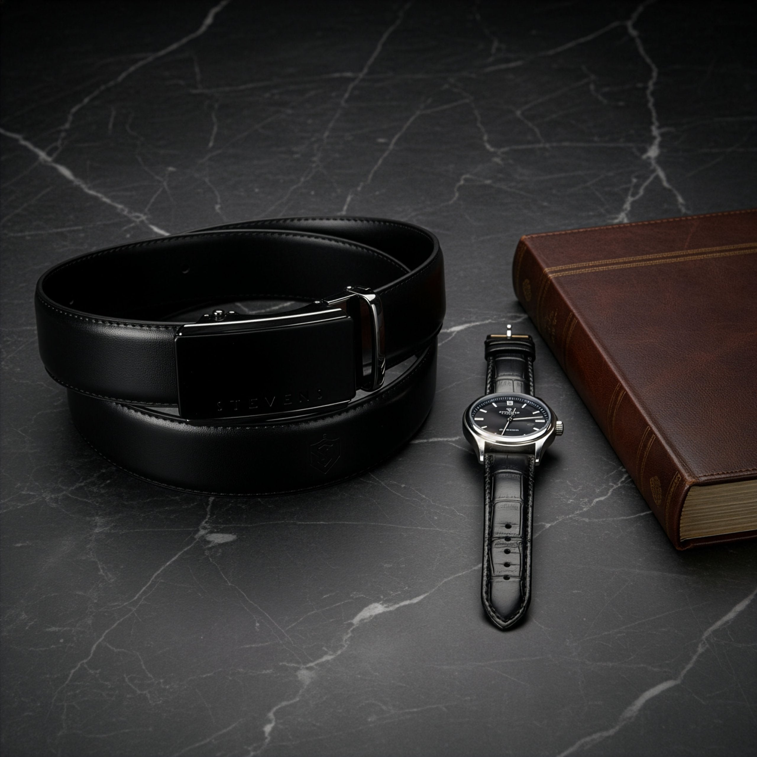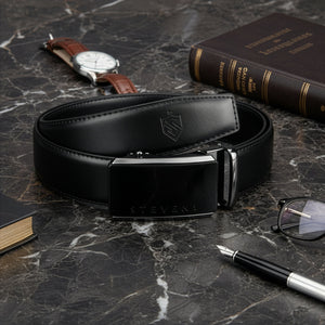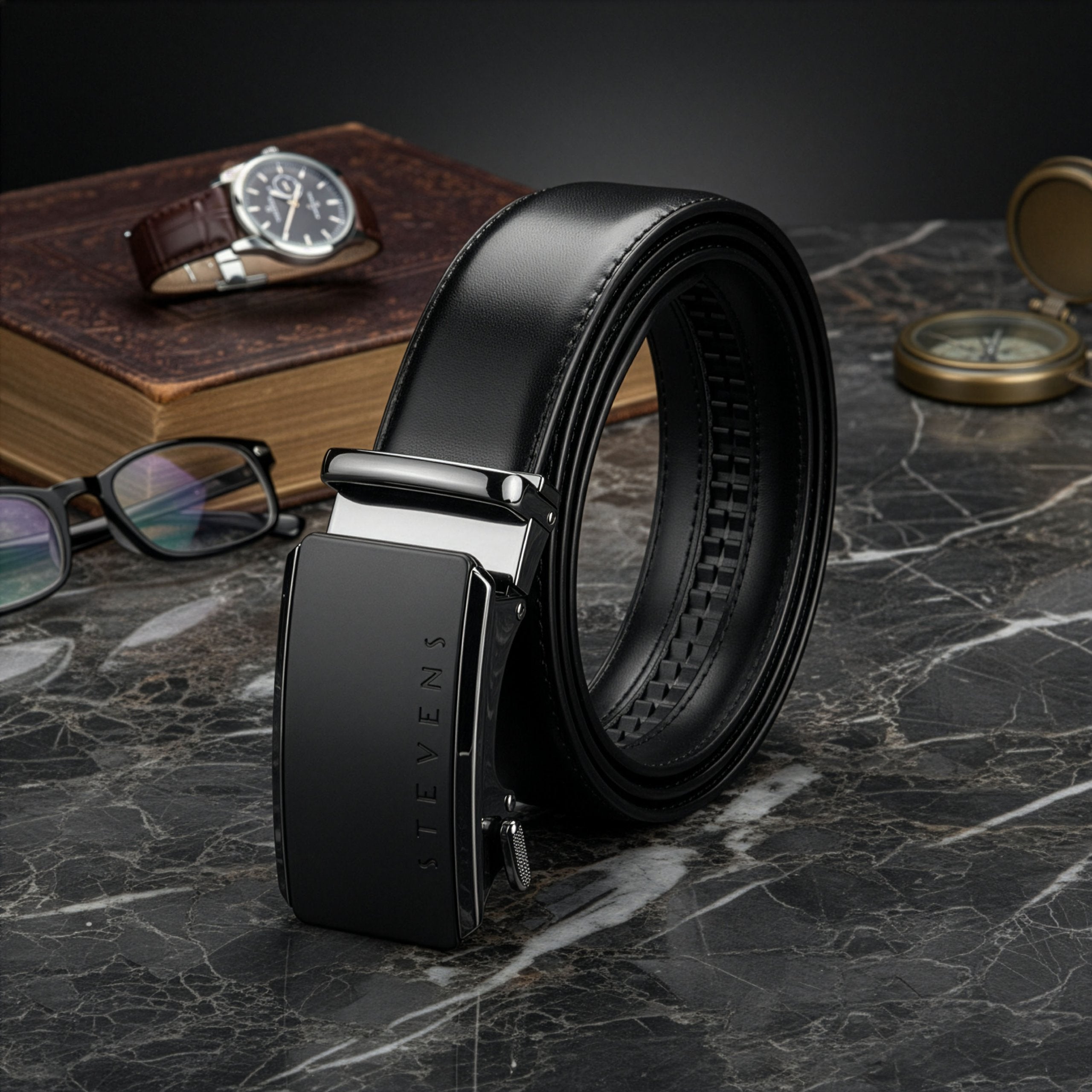 Vyriškas diržas Stevens, natūrali oda, juodas, automatinė sagtis 2504