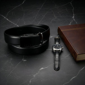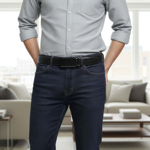 Minimalistinio dizaino, matinio juodo paviršiaus sagtis suteikia diržui švarų ir modernų charakterį. Tinka vyrams, vertinantiems eleganciją ir tvarkingą įvaizdį.