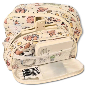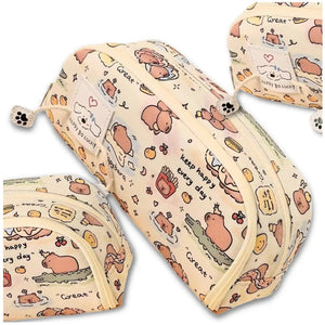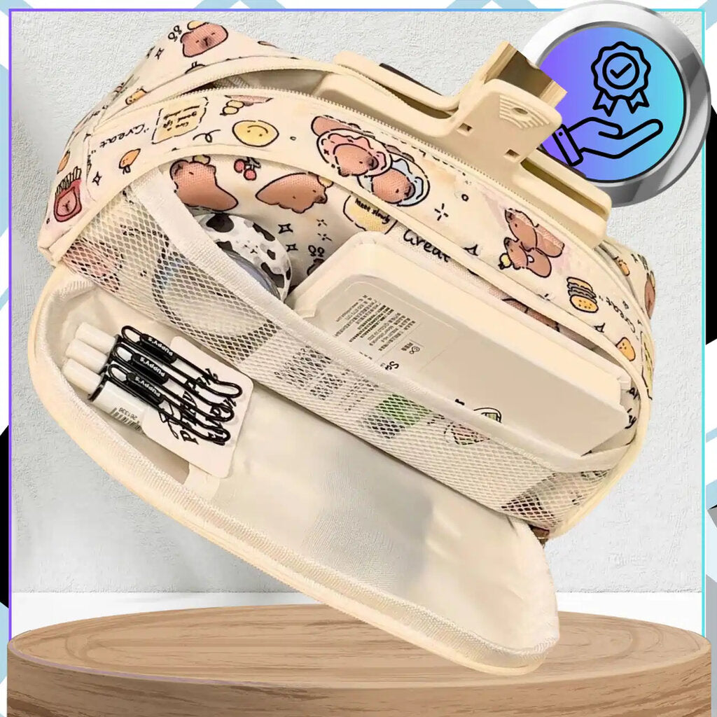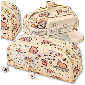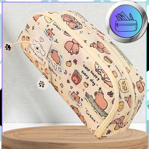 Ieškai ne tik gražaus, bet ir praktiško penalės? Šis išskleidžiamas kapibaros penalas – tai tobula organizavimo priemonė mokyklai, darbui ar kūrybiniams projektams. Kawaii stiliaus dizainas su žaviomis kapibarų iliustracijomis, vaisiais, sausainiais, debesėliais ir mielais užrašais privers nusišypsoti kiekvieną kartą.
