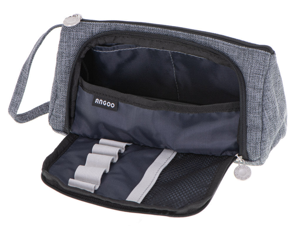 Šis dviejų skyrių pilkas penalas yra puikus pasirinkimas tiems, kurie nori tvarkingai laikyti visus mokyklinius reikmenis. Jame lengvai telpa pieštukai, kreidelės, žymekliai ir liniuotė. Be to, jis puikiai tinka kosmetikai ar kitiems smulkiems daiktams laikyti rankinėje ar kuprinėje.