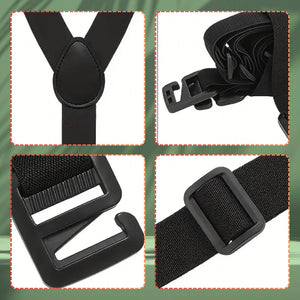 Vyriškos petnešos su reguliuojamu ilgiu, pagamintos iš aukščiausios kokybės gumos ir minkštos, patvarios ekologiškos odos. Klampos ir kabliukai tvirtai laiko kelnes.