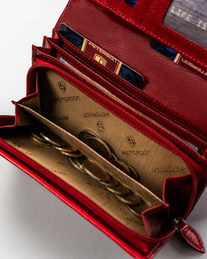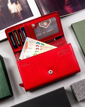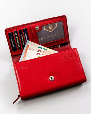 Ši elegantiška moteriška piniginė iš natūralios odos yra puikus pasirinkimas tiems, kurie vertina kokybę ir funkcionalumą. Raudona spalva suteikia stilingumo, o didelis dydis užtikrina, kad viskas, ko reikia, bus po ranka.